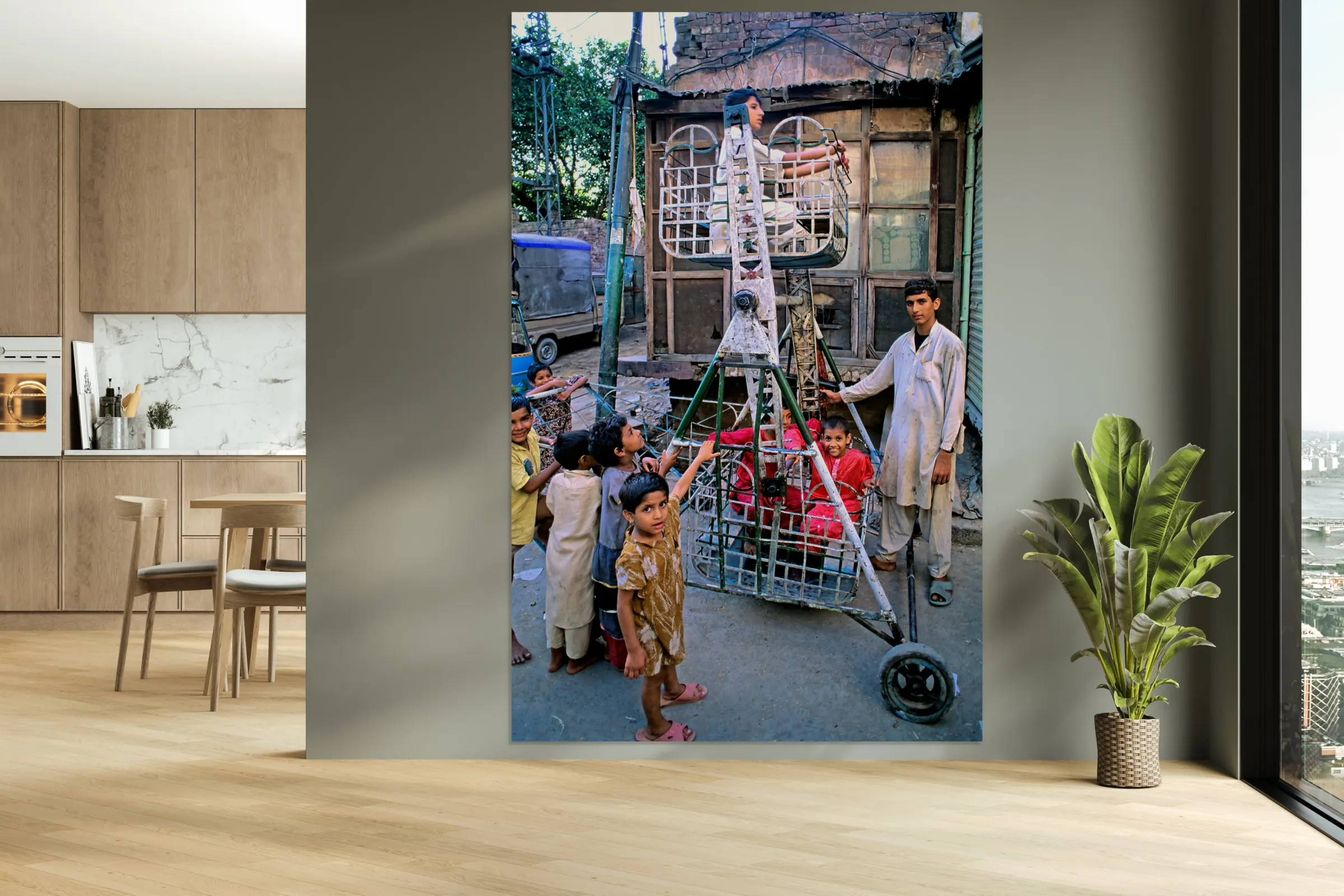 Children enjoy playtime on a swing in Lahore Picture Frame Printing