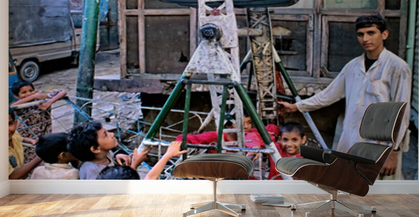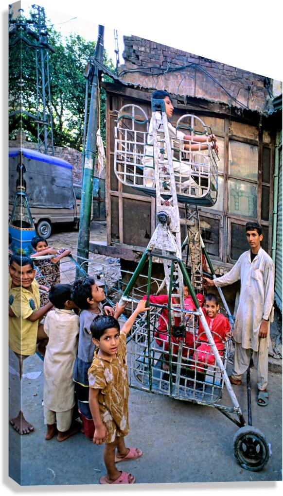 Get this artwork "Children enjoy playtime on a swing in Lahore" in a framed print.