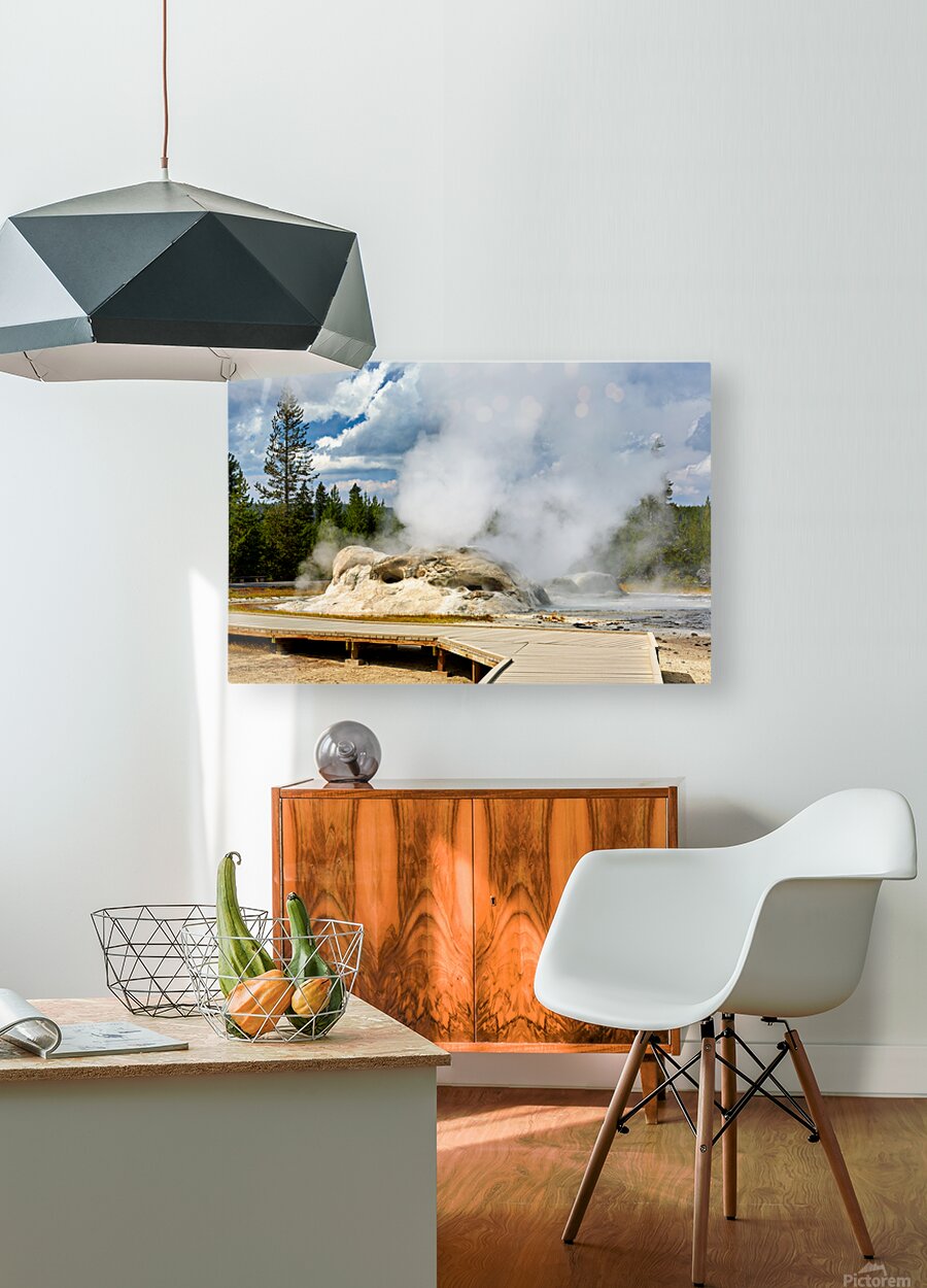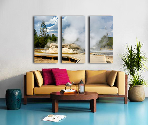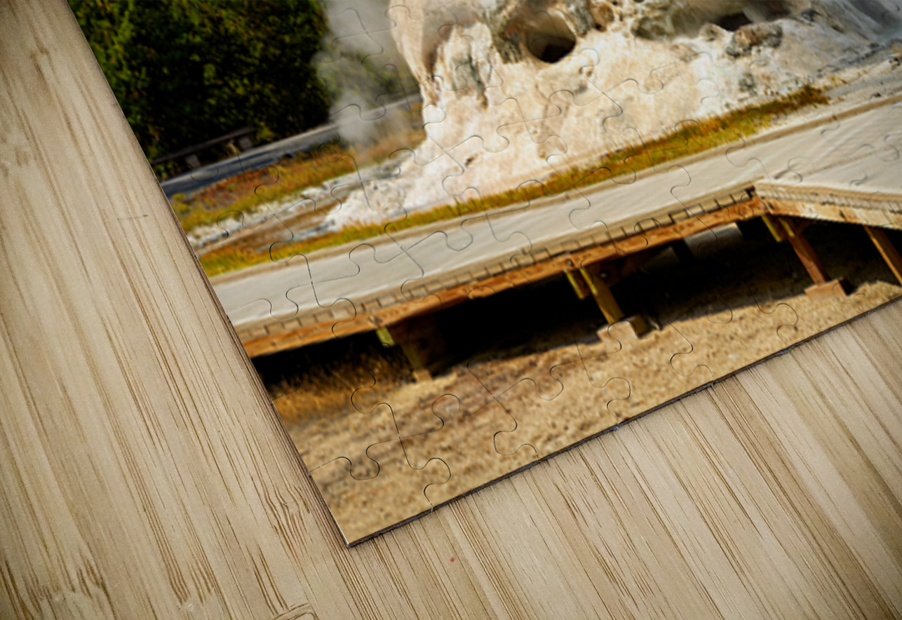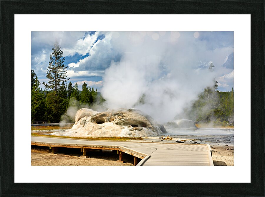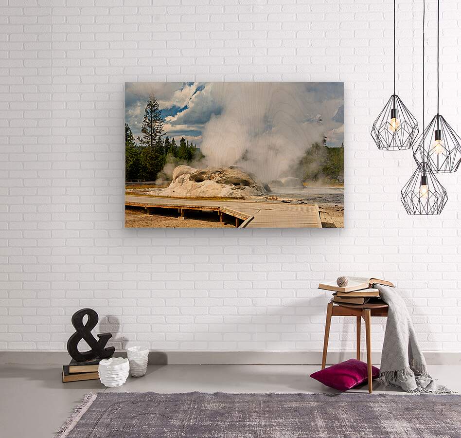 Grotto Geyser erupts with steam and water in Yellowstone National Park. Visitors can see the powerful nature in this active geothermal area.