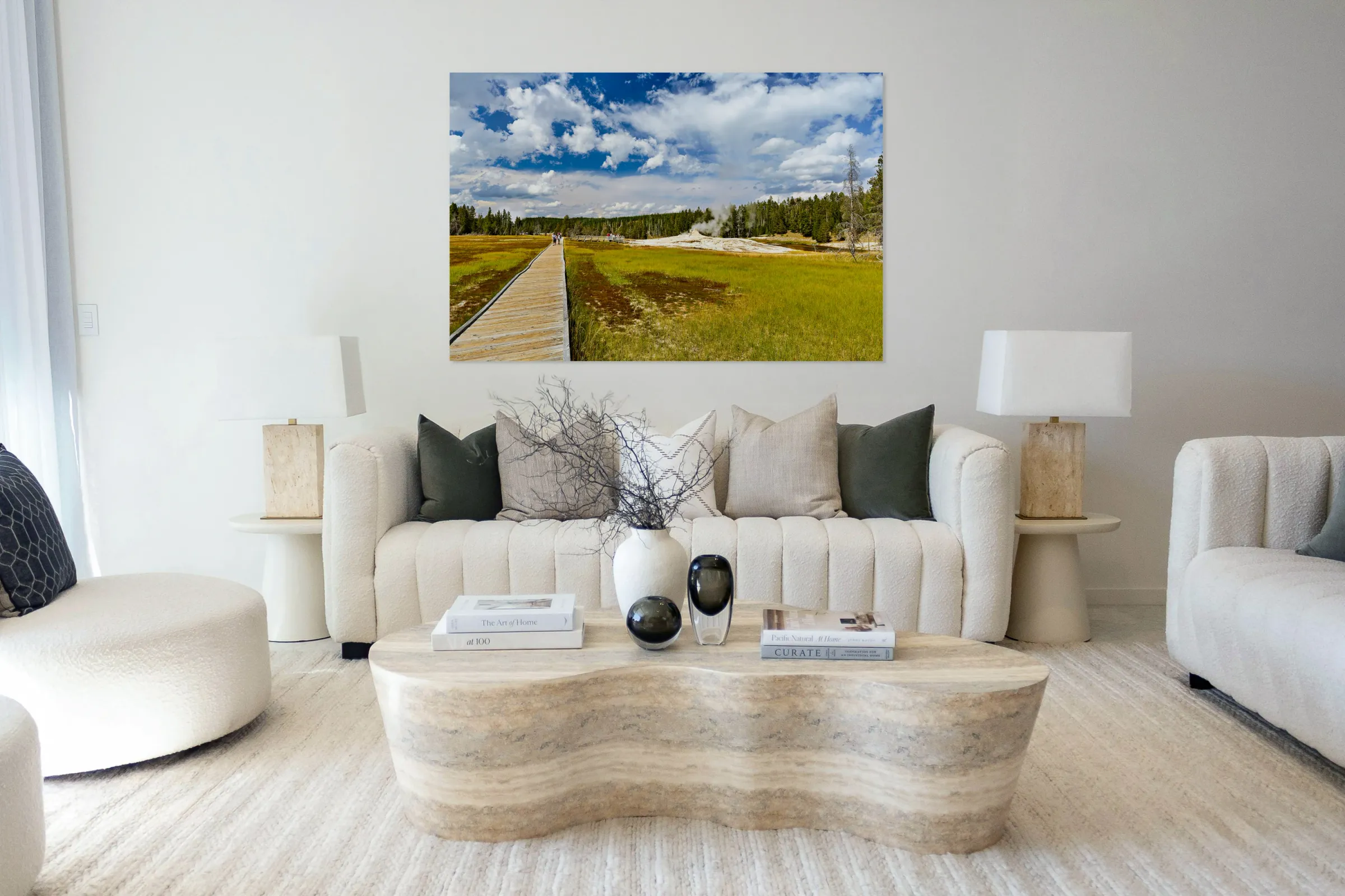 ABOUT THIS ARTWORK: VISITORS STROLL THE UPPER GEYSER BASIN BOARDWALK