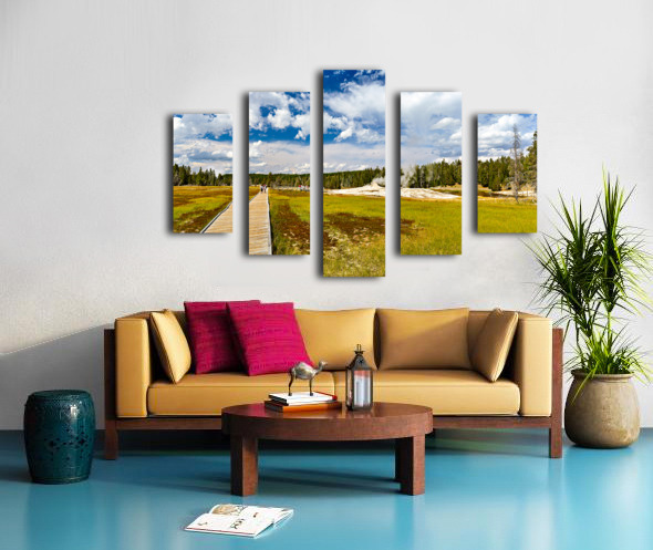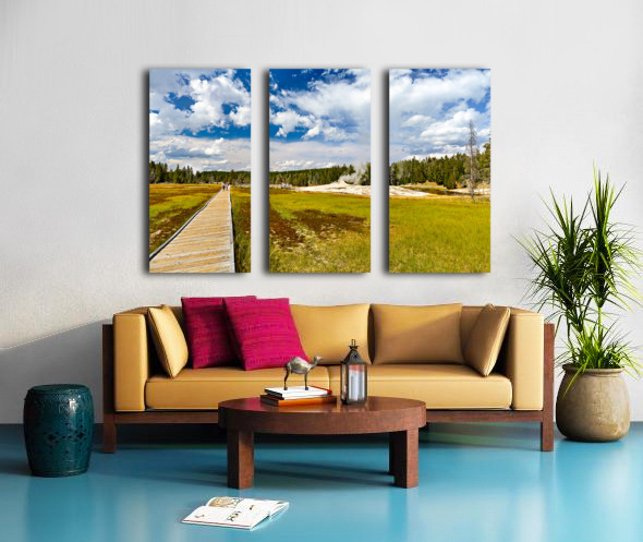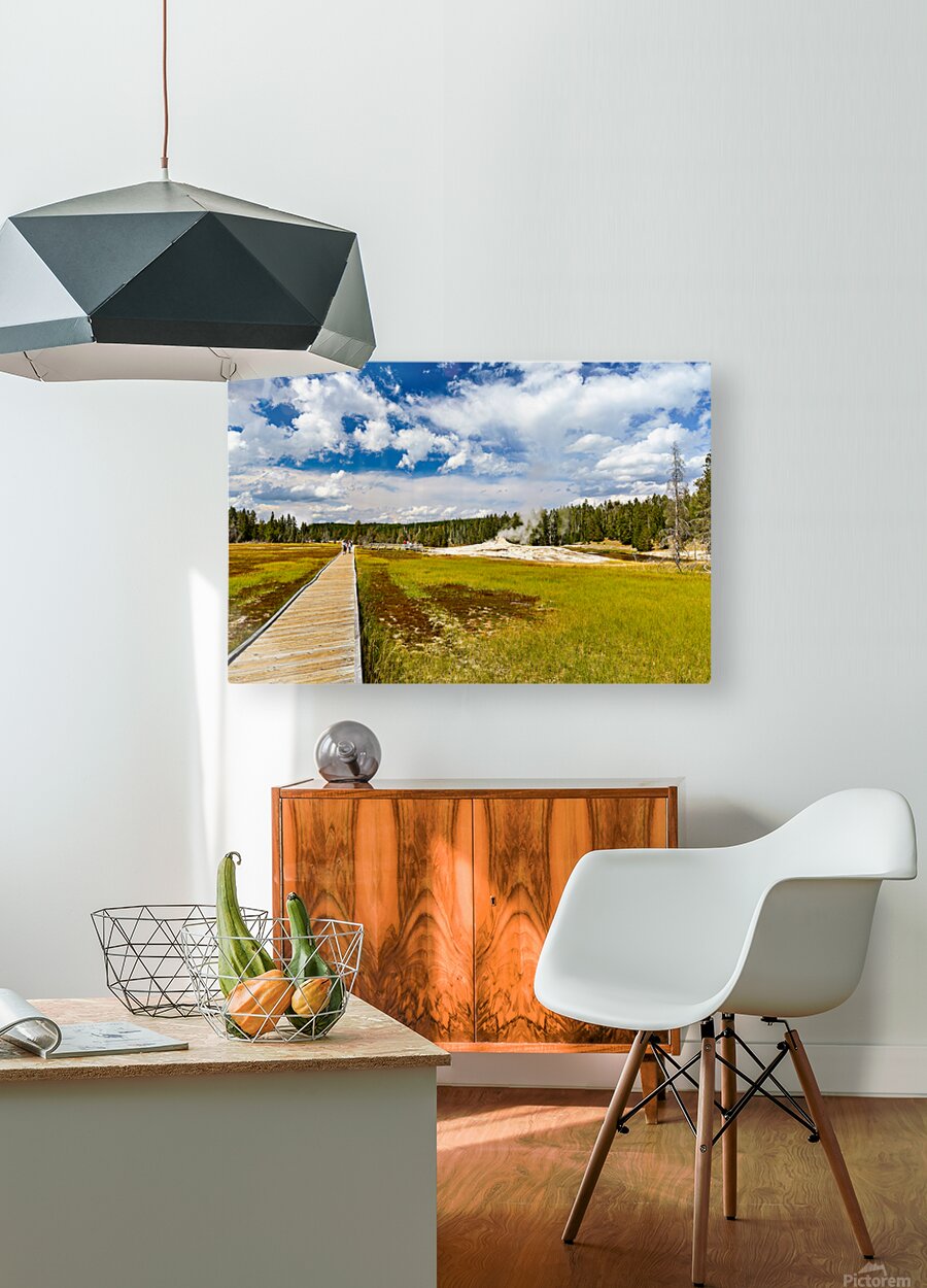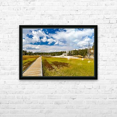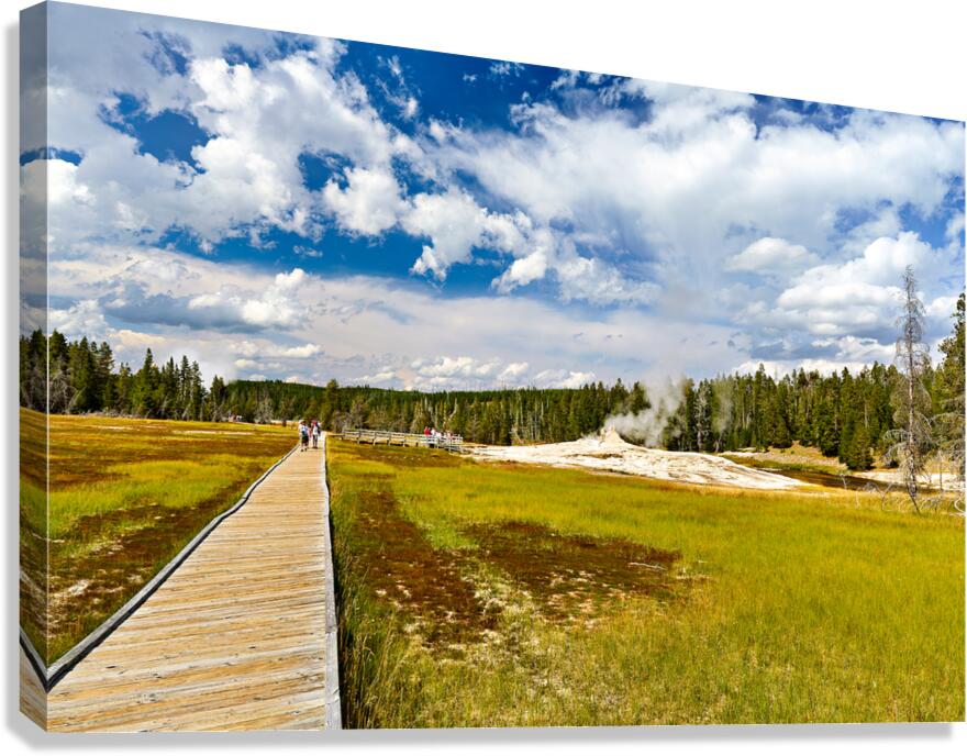Get this artwork "Visitors stroll the Upper Geyser Basin boardwalk" in a framed print.