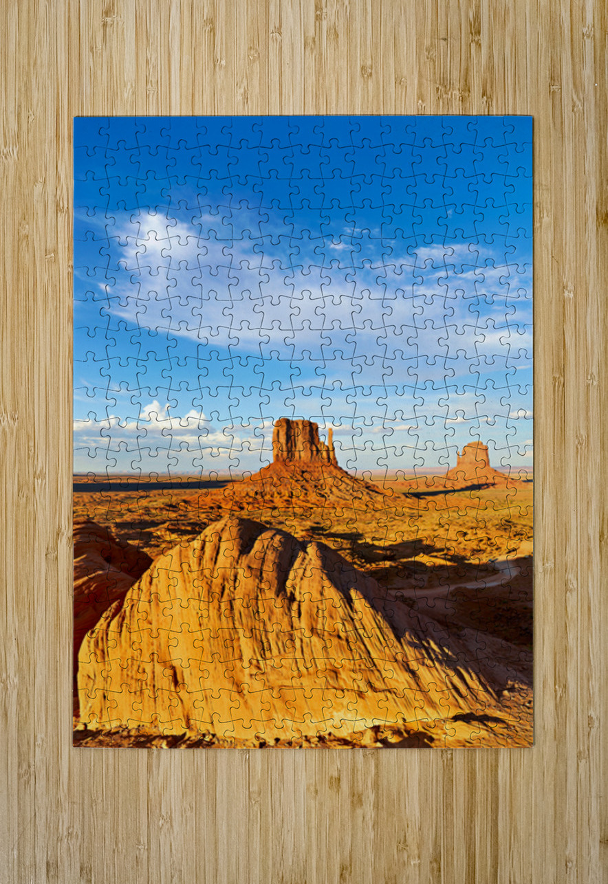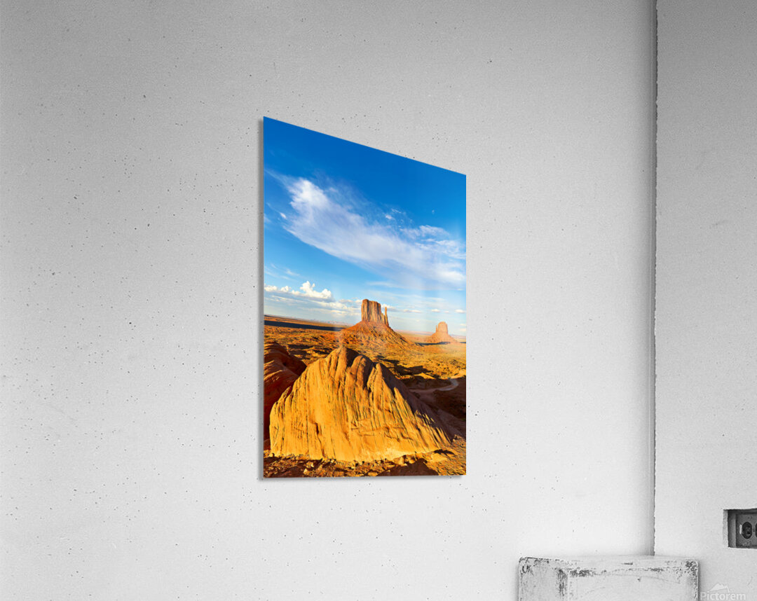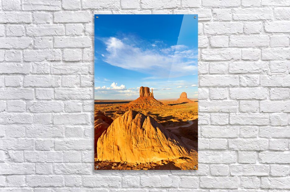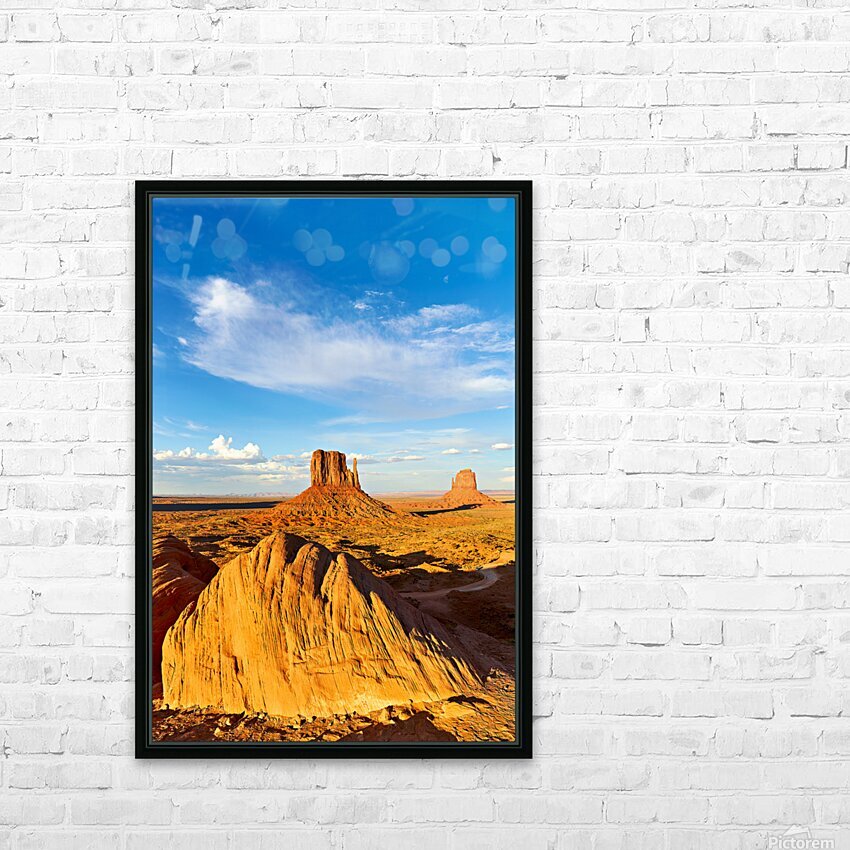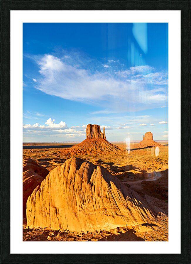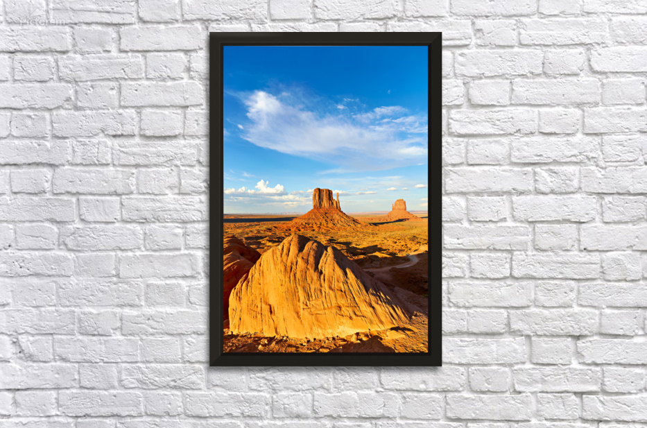 "Monument Valley showcases natural rock formations in the USA" in a framed print.