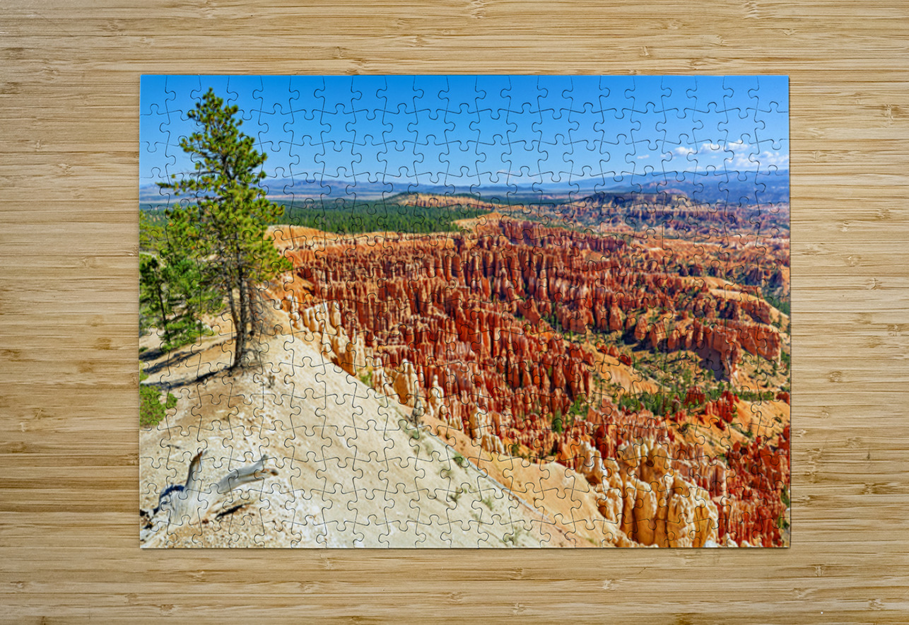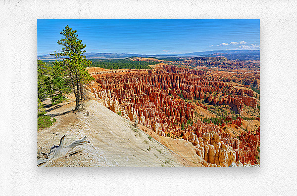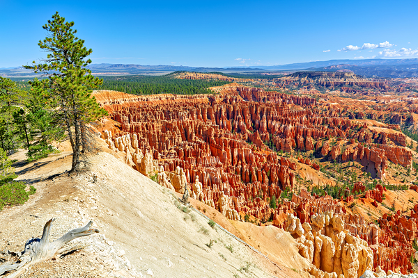 Visitors stand at Inspiration Point in Bryce Canyon National Park. They admire rock formations and vast landscapes under a clear blue sky.