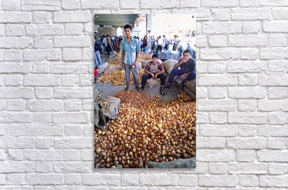 Get this artwork "Young vendors sell onions in a market in Khiva Uzbekistan" in a framed print.