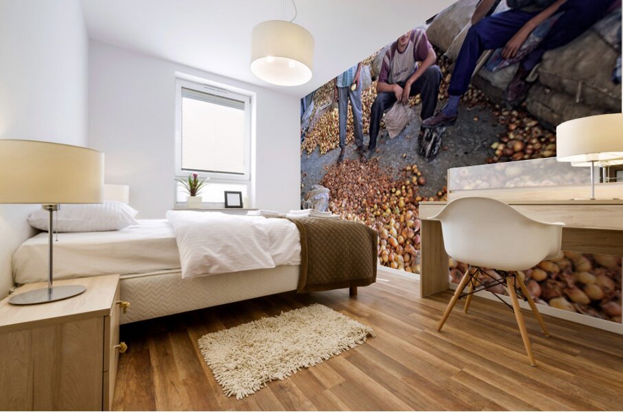 ABOUT THIS ARTWORK: YOUNG VENDORS SELL ONIONS IN A MARKET IN KHIVA UZBEKISTAN