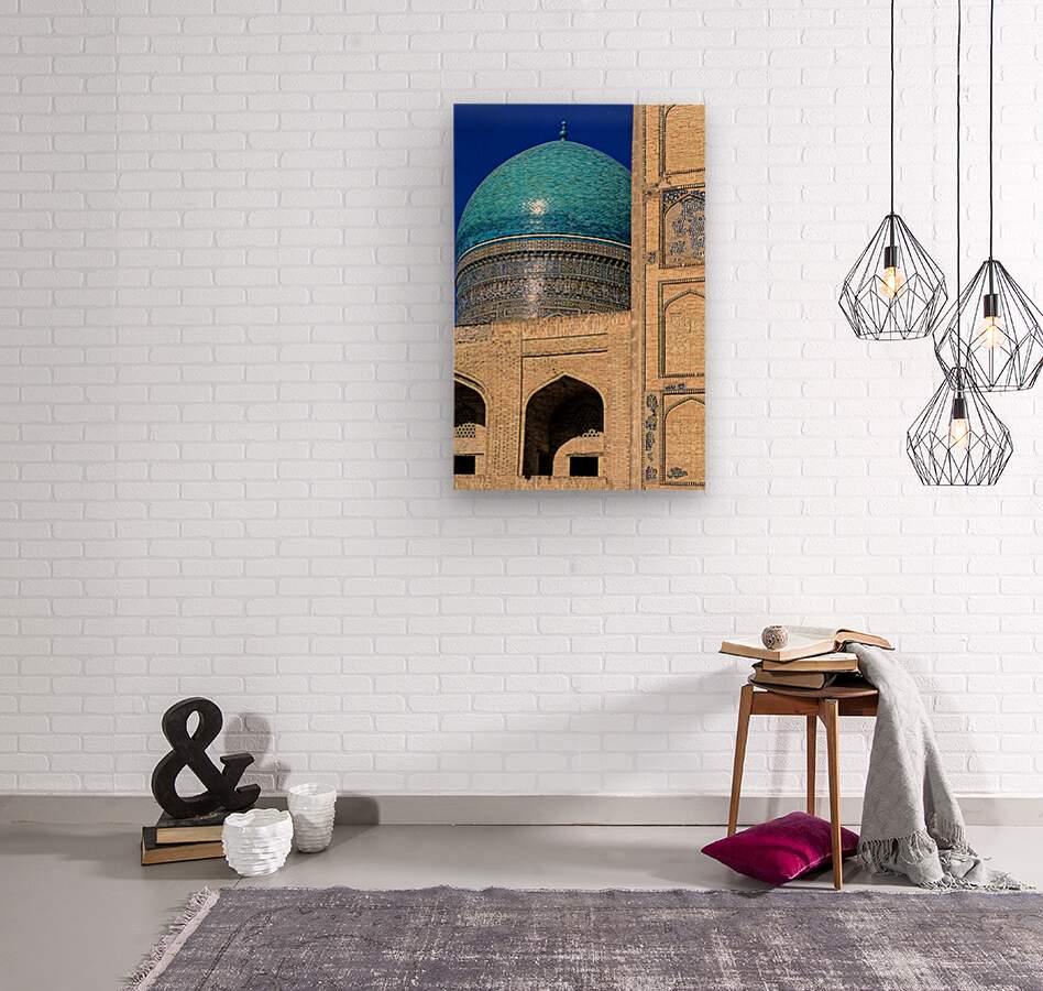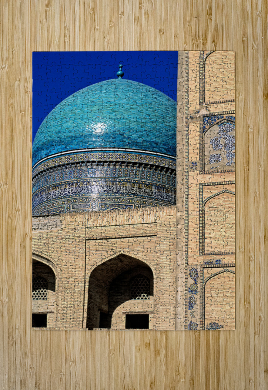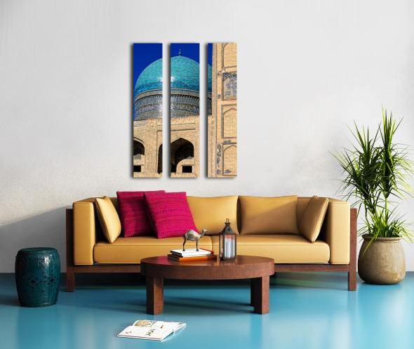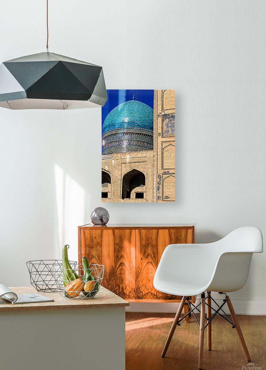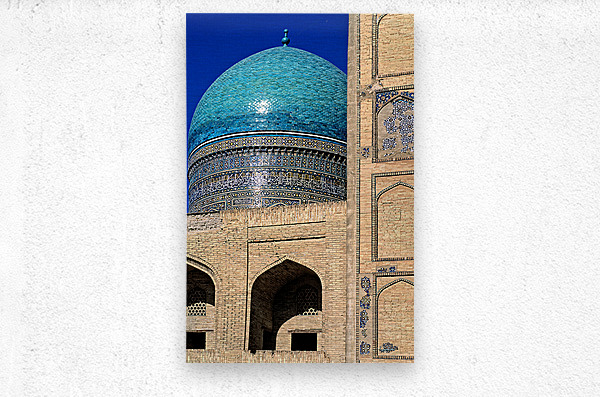 "Bukhara features blue dome of historical mosque during daylight" in a framed print.