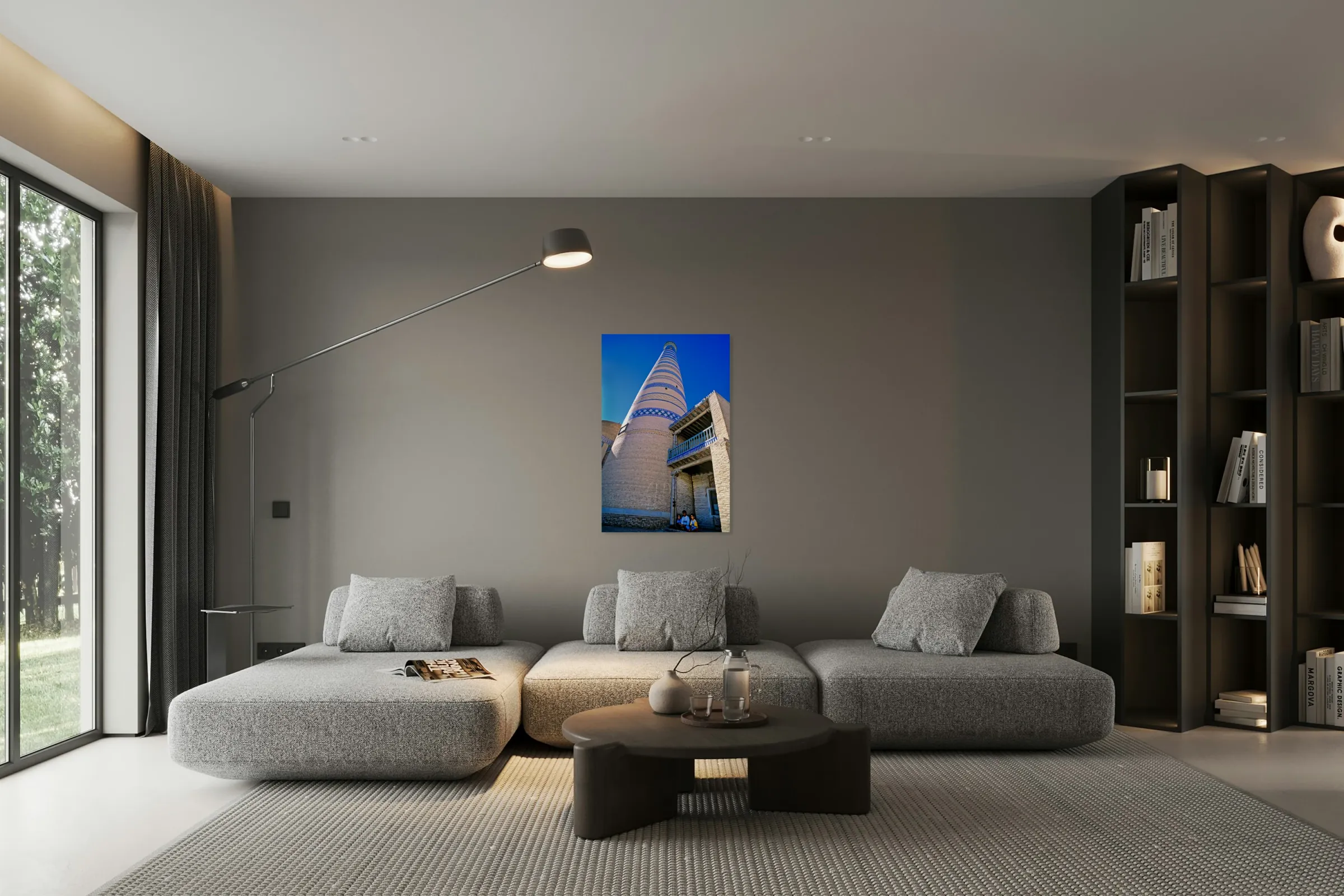 ABOUT THIS ARTWORK: HISTORIC ARCHITECTURE IN KHIVA UZBEKISTAN ON A SUNNY DAY