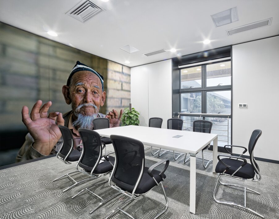 ABOUT THIS ARTWORK: ELDERLY MAN SHOWING HAND GESTURES IN KHIVA UZBEKISTAN