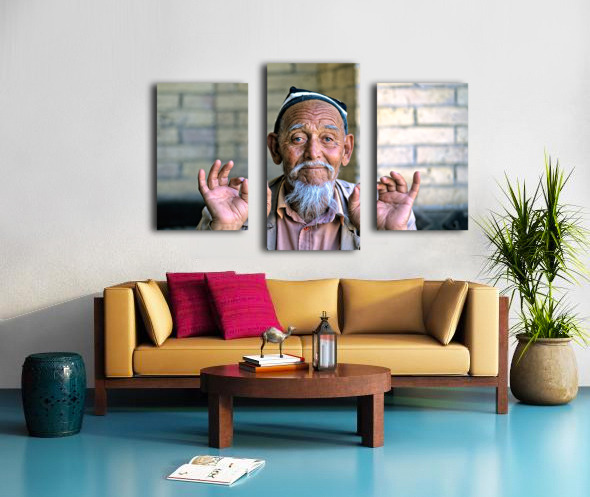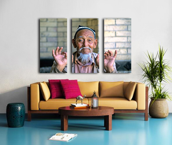Elderly man showing hand gestures in Khiva Uzbekistan Frame print