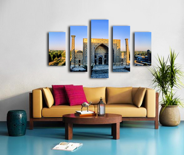 ABOUT THIS ARTWORK: HISTORIC BUILDING IN KHIVA DURING SUNSET IN UZBEKISTAN