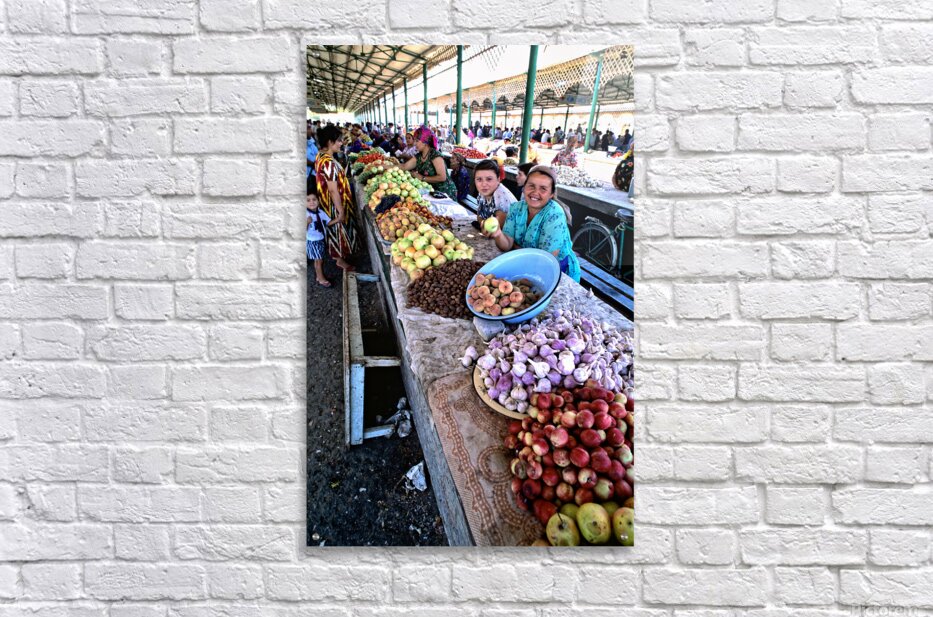 Get this artwork "Market scene in Khiva Uzbekistan with fresh produce and people" in a framed print.