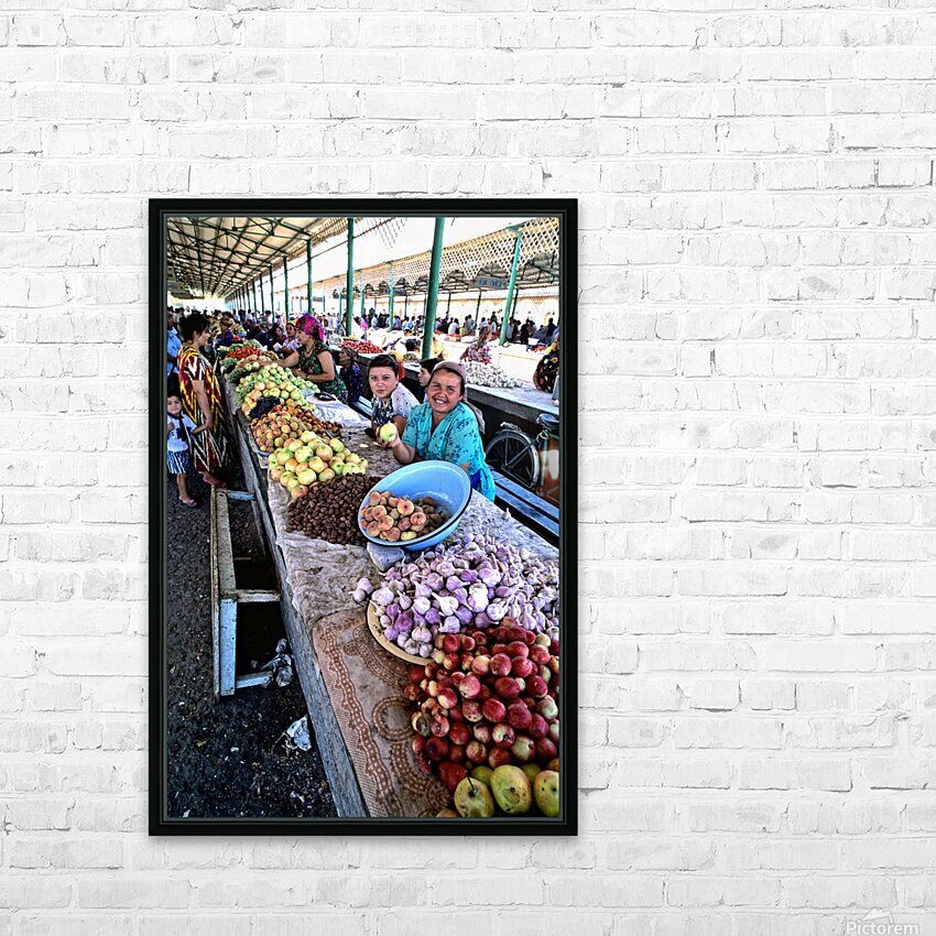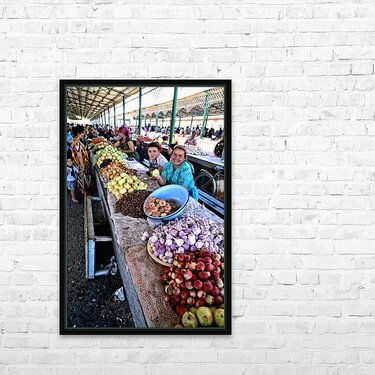 Market scene in Khiva Uzbekistan with fresh produce and people Picture Frame Printing