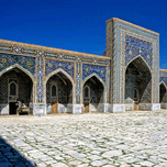 The historic buildings in Khiva Uzbekistan showcasing their unique designs and rich culture under a clear blue sky.