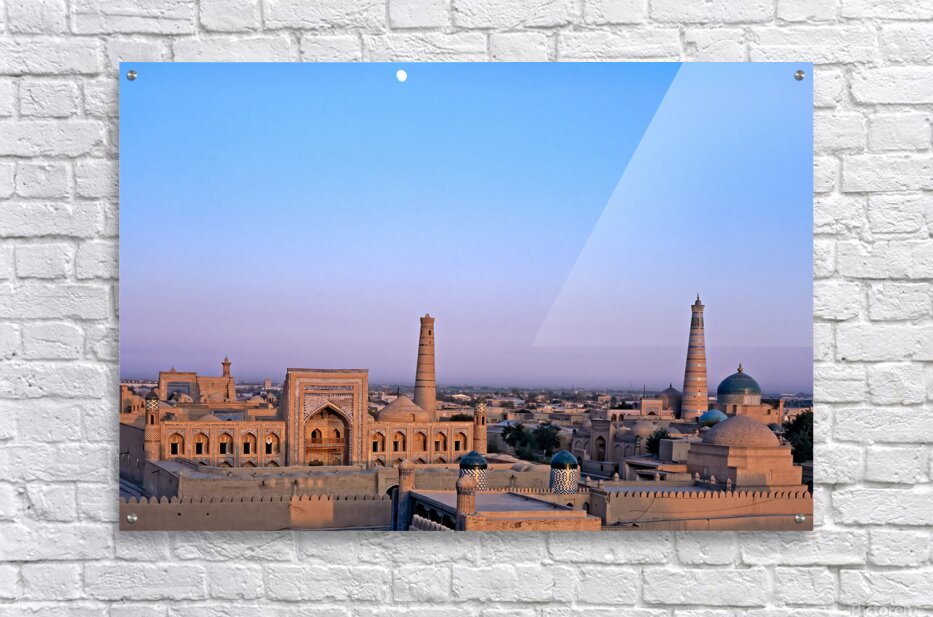 Get this artwork "Sunset view over Khivas historic architecture in Uzbekistan" in a framed print.