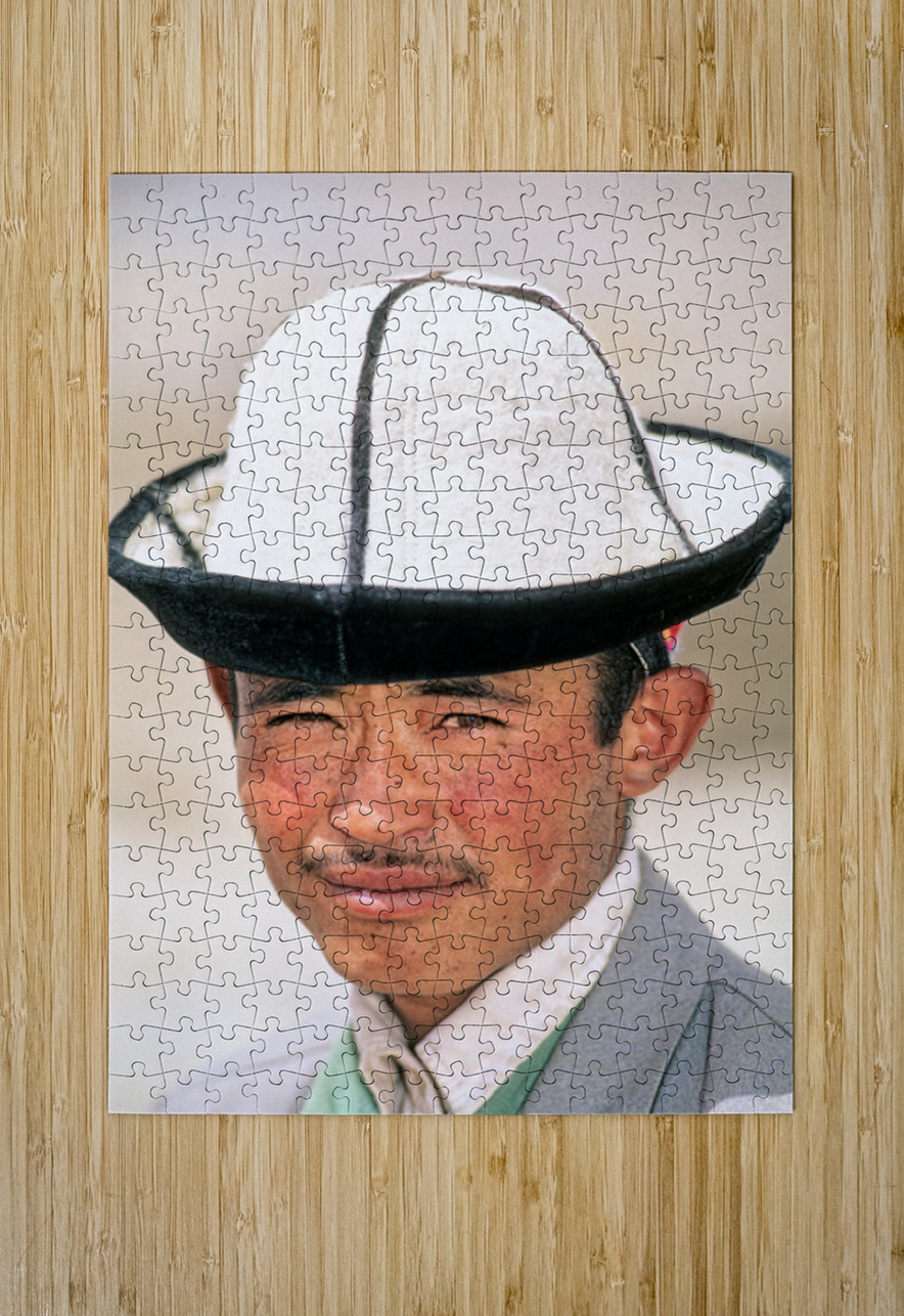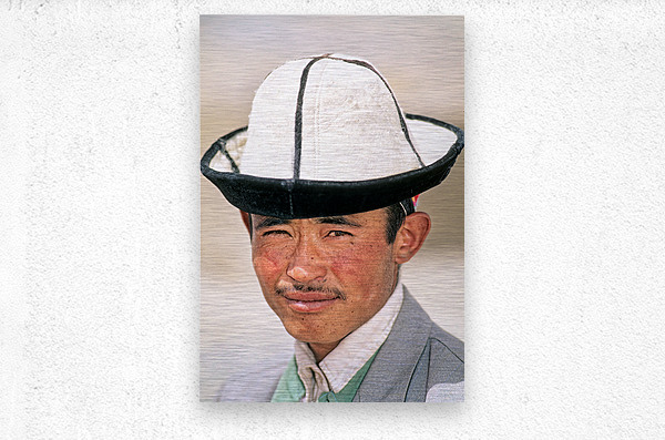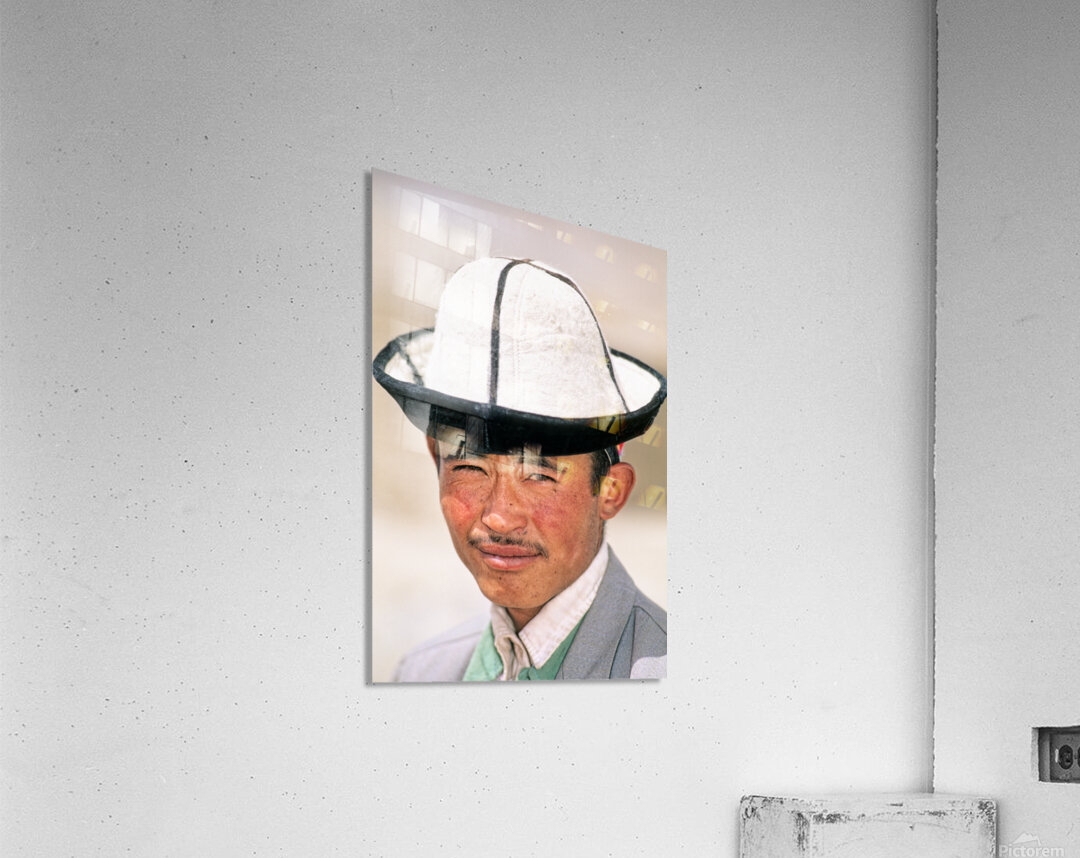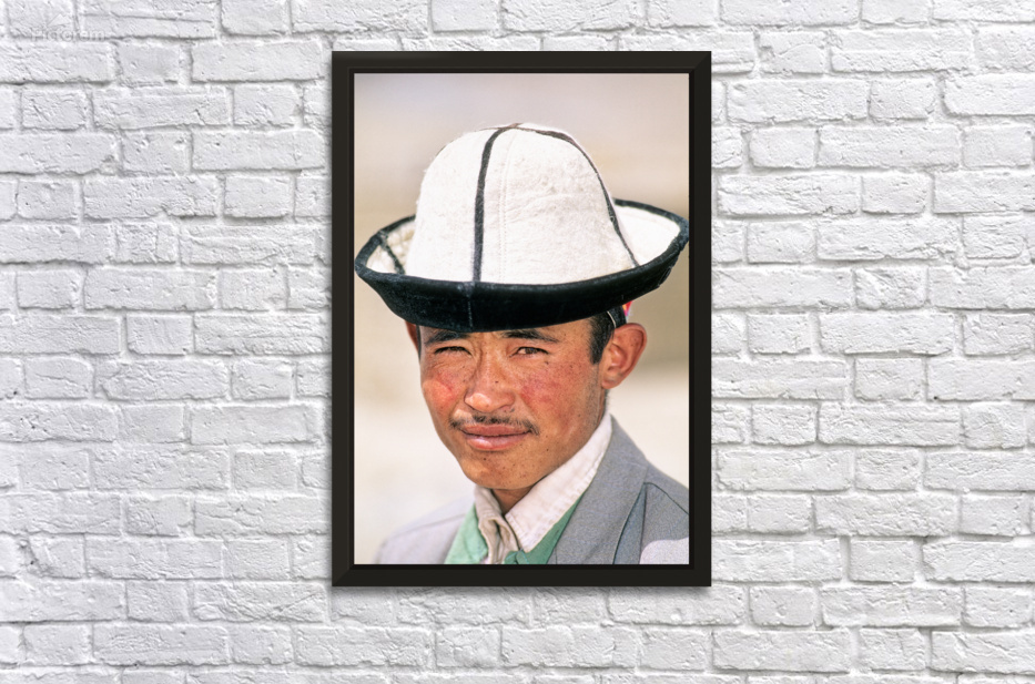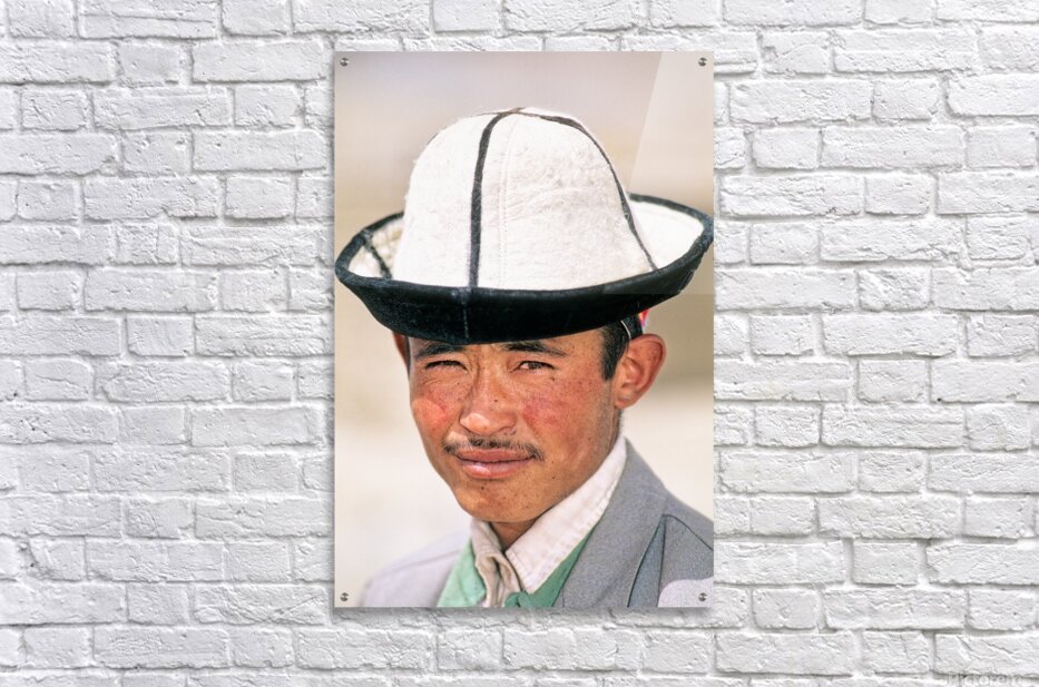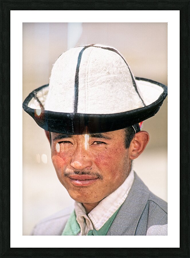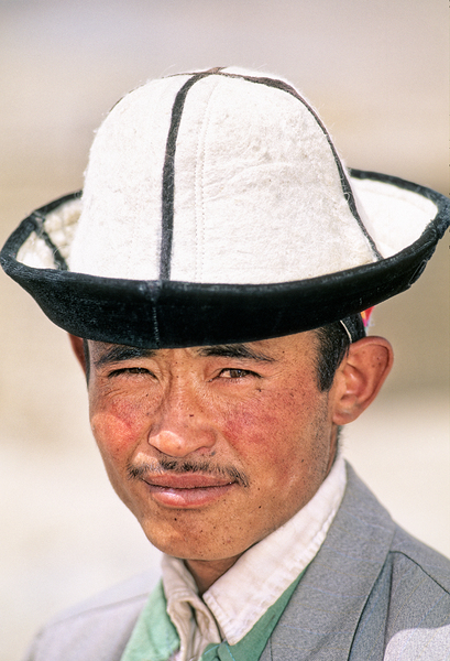 A young man stands in Uzbekistan wearing a traditional hat. His expression shows confidence and pride. The background is blurred.
