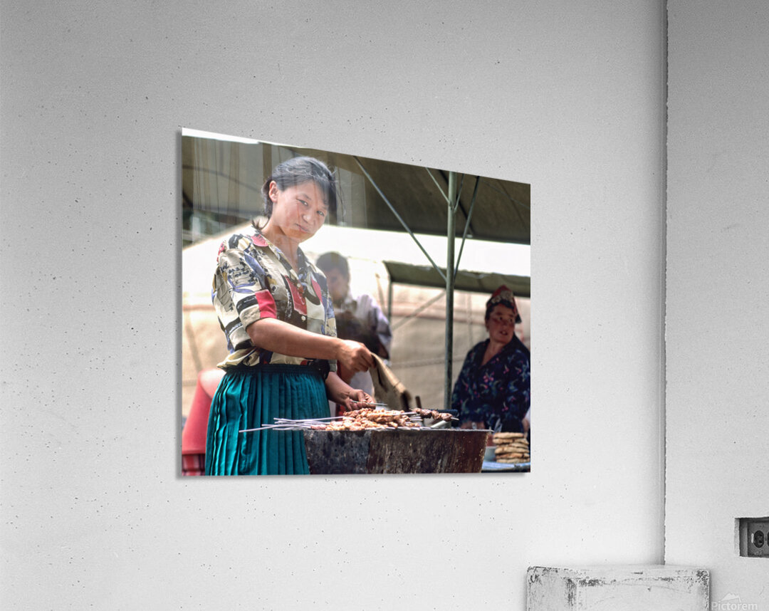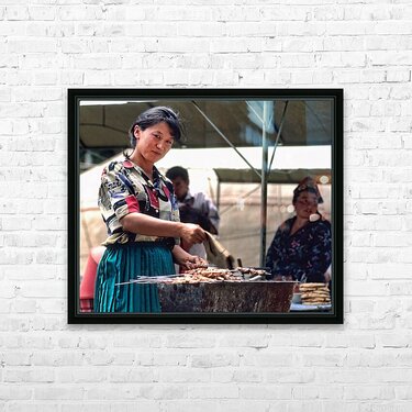 Street food vendors serve meat skewers in Samarkand Uzbekistan Picture Frame Printing
