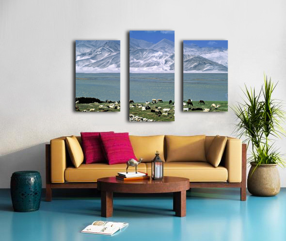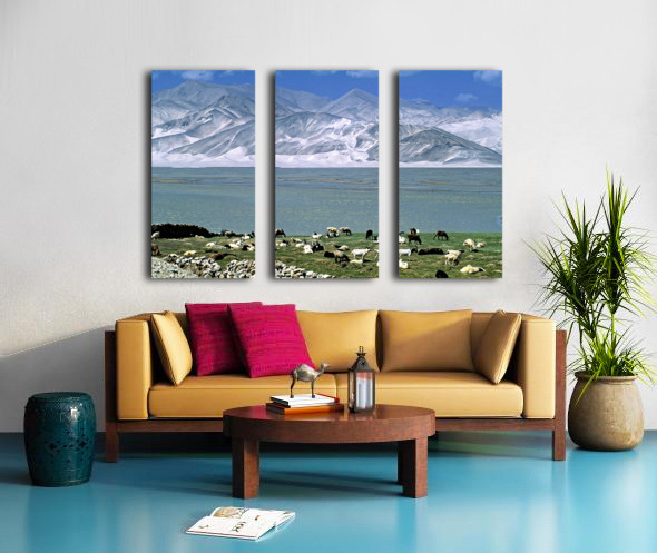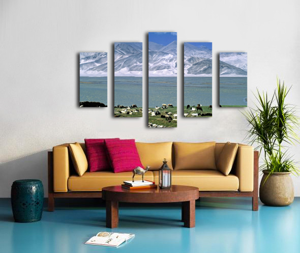 Get this artwork "Mountains and livestock in Uzbekistan landscape" in a framed print.