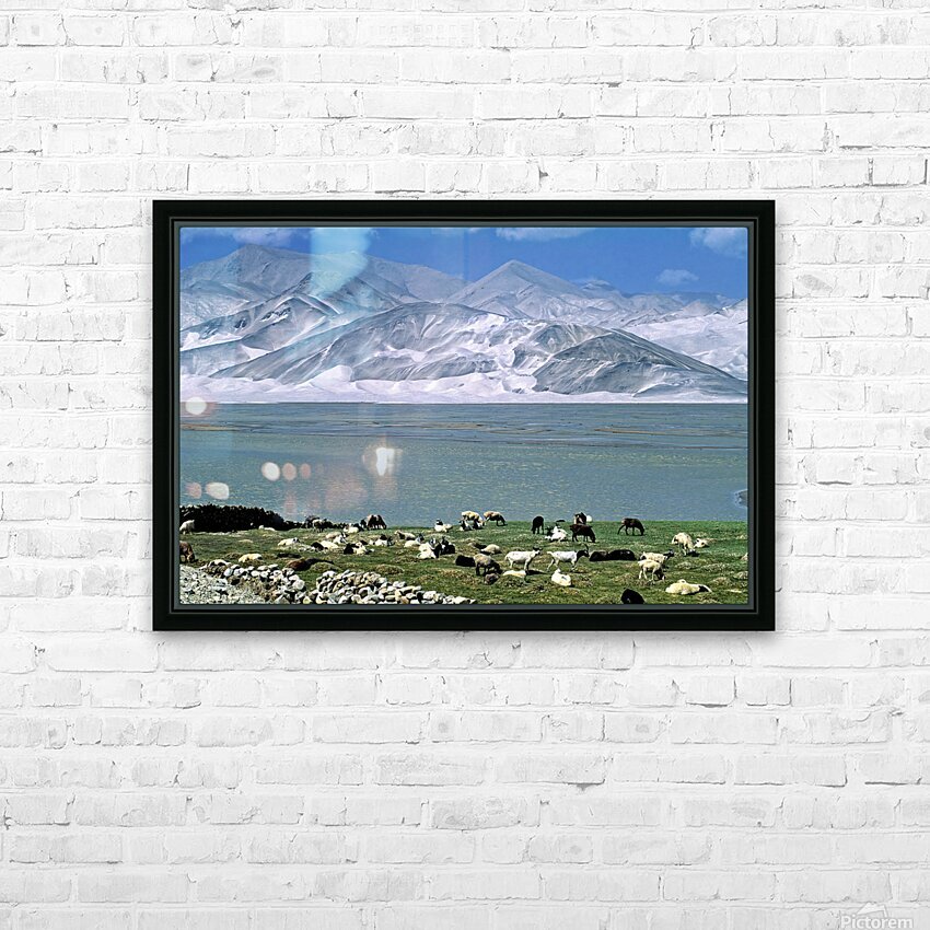Mountains and livestock in Uzbekistan landscape Picture Frame Printing