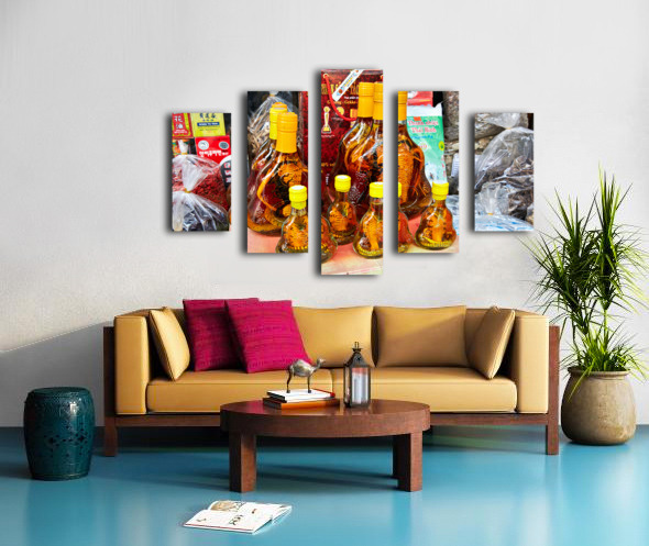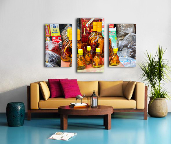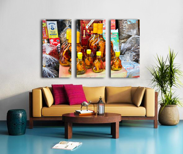 Get this artwork "Vietnamese snake wine bottles displayed in Hanoi market" in a framed print.