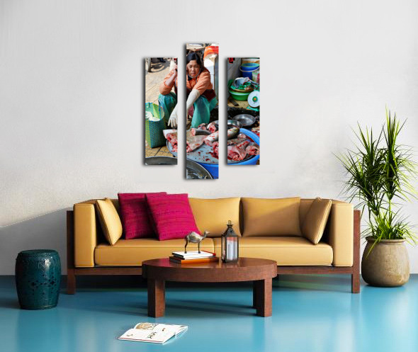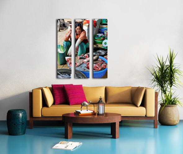 Get this artwork "Fish vendor works at market in Hanoi Vietnam" in a framed print.