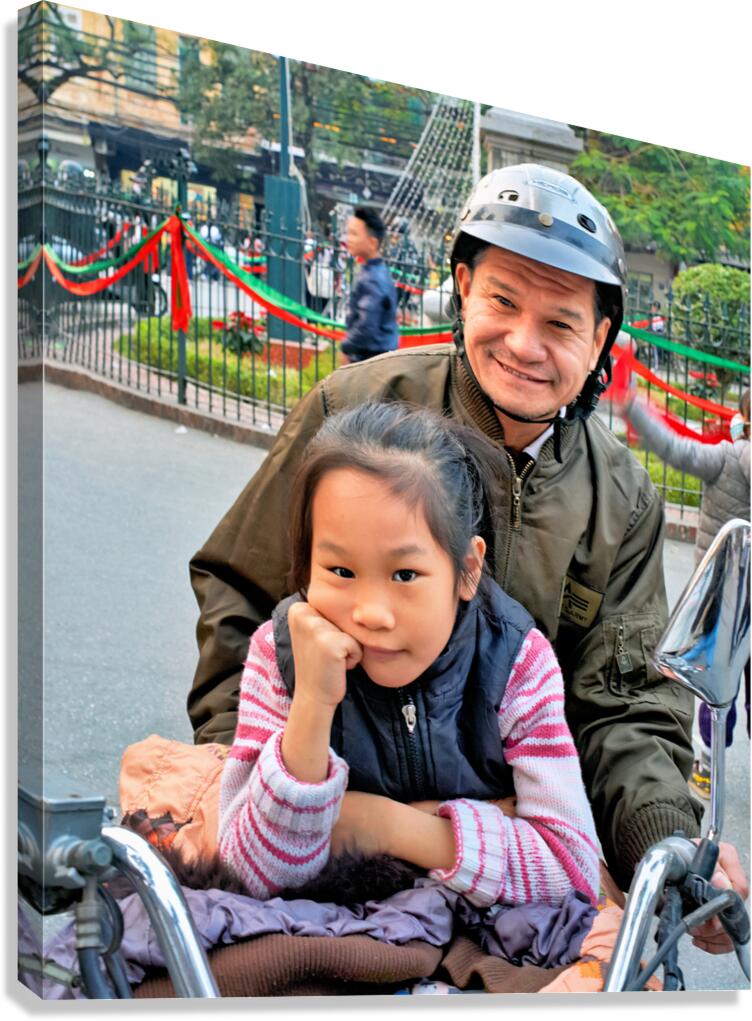 Get this artwork "Grandfather and granddaughter share a moment in Hanoi" in a framed print.