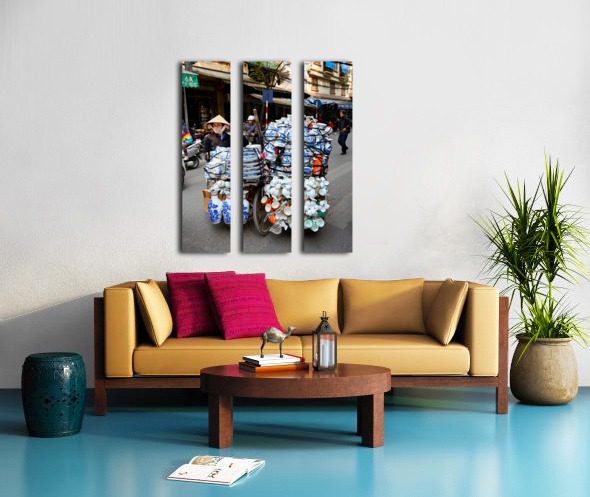 Get this artwork "Woman transports pottery on a bicycle in Hanoi streets" in a framed print.