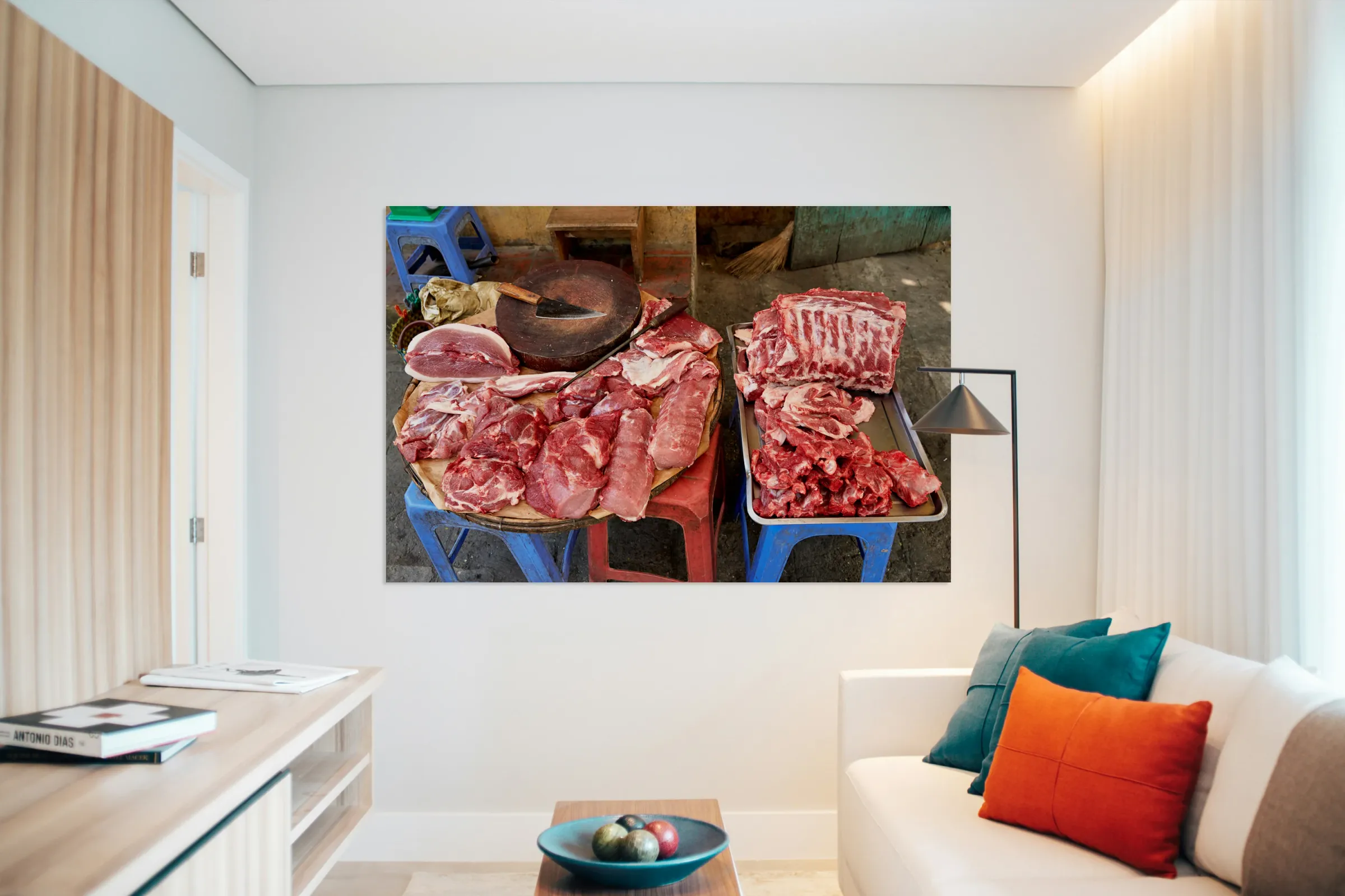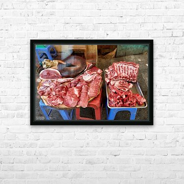 Fresh meat sold in Hanoi market during daytime Picture Frame Printing