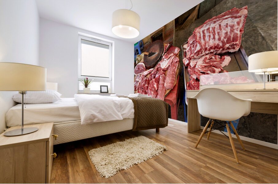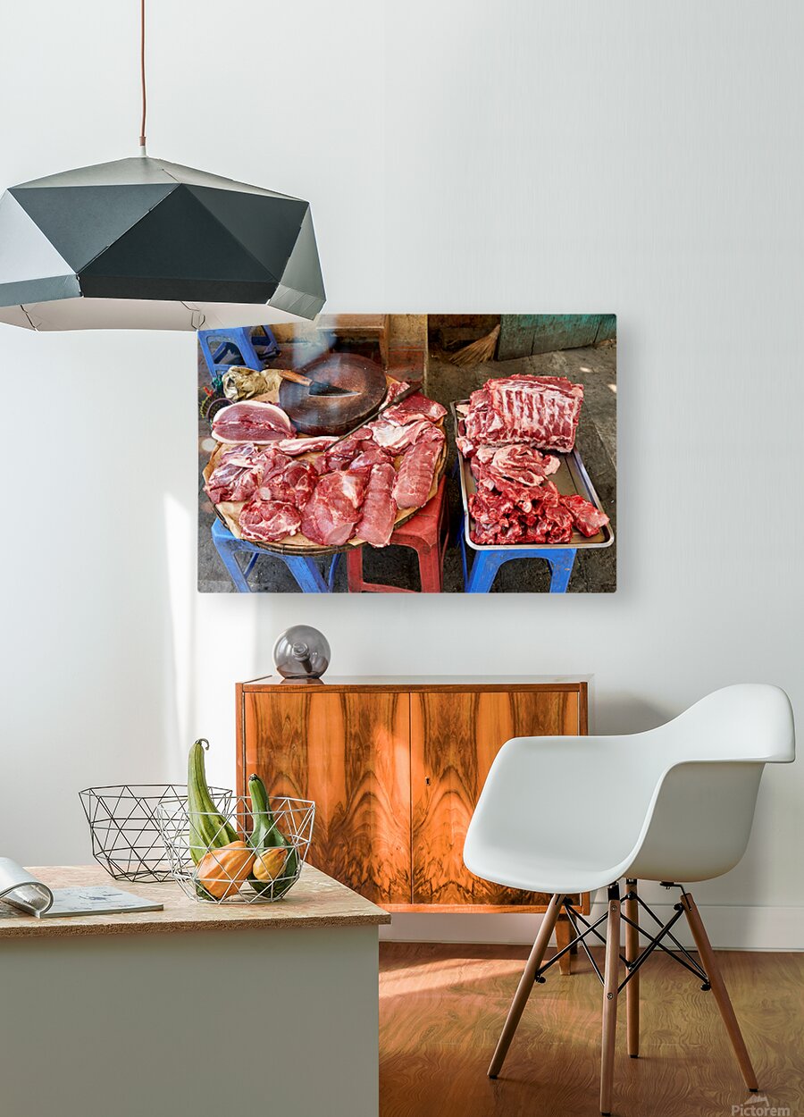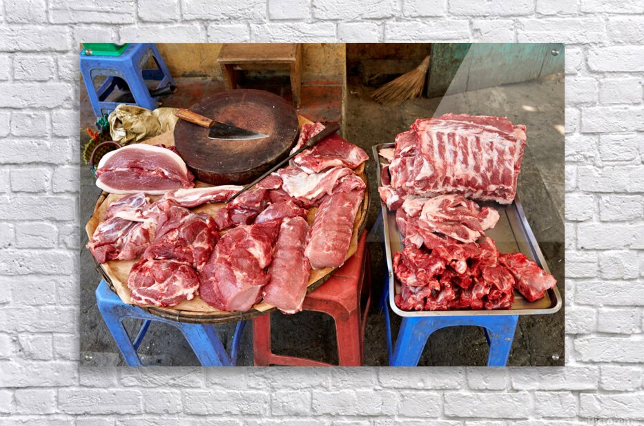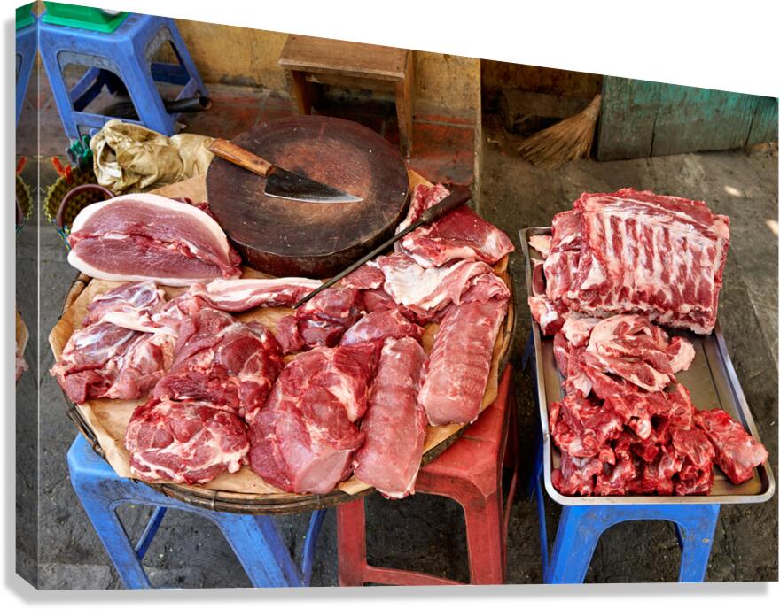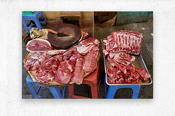 ABOUT THIS ARTWORK: FRESH MEAT SOLD IN HANOI MARKET DURING DAYTIME