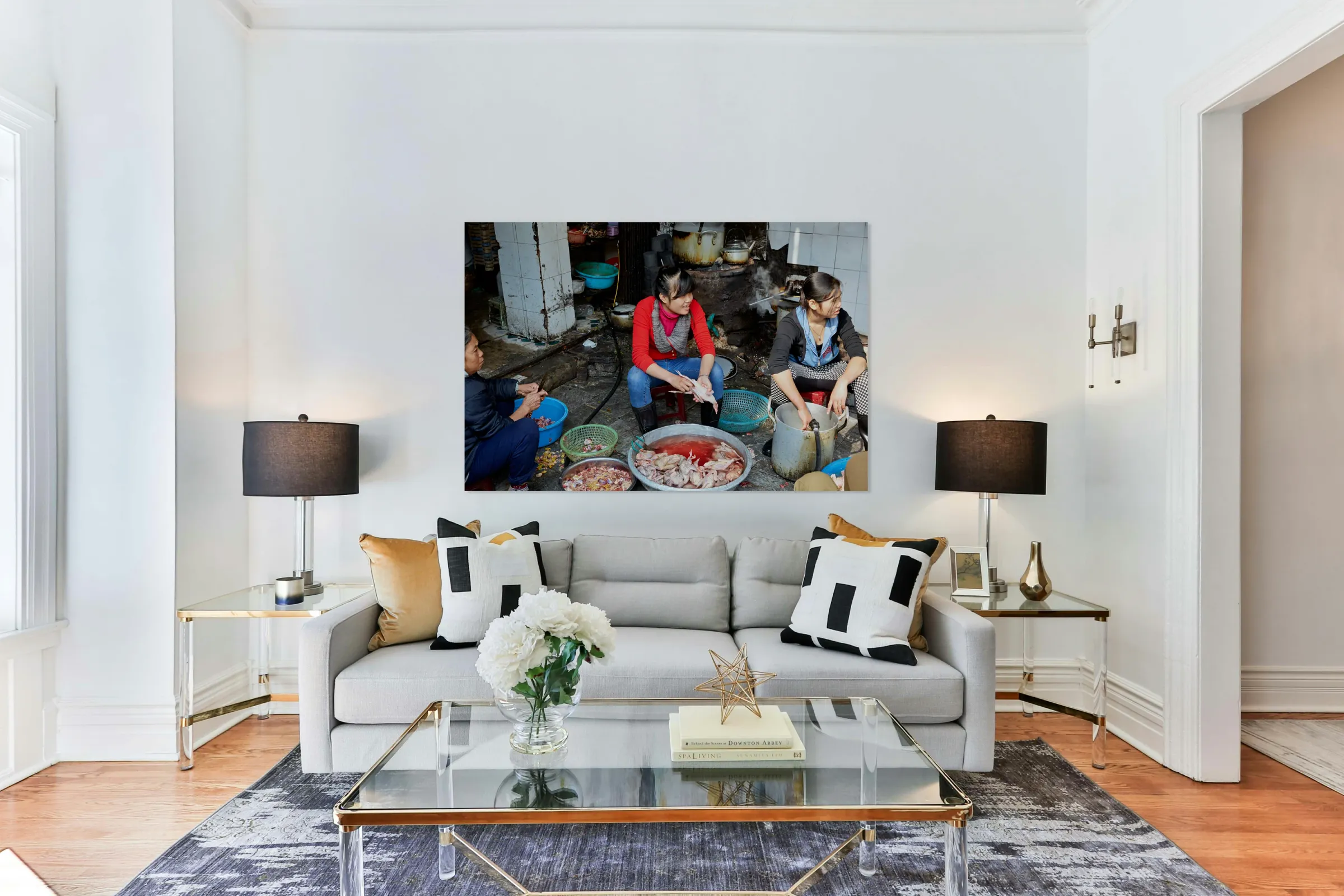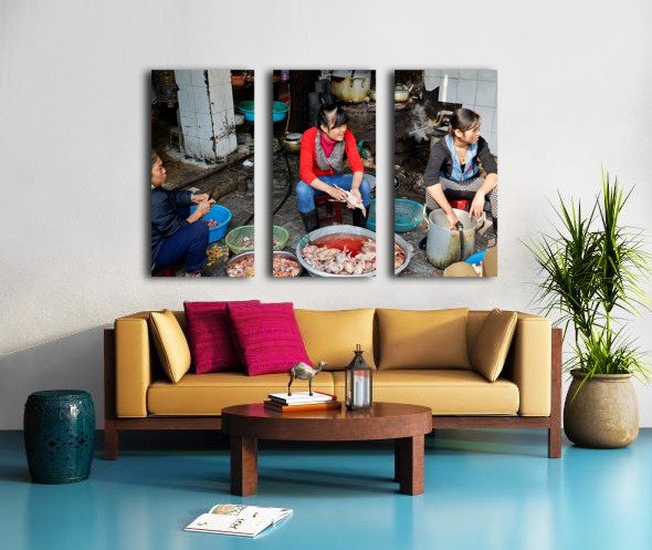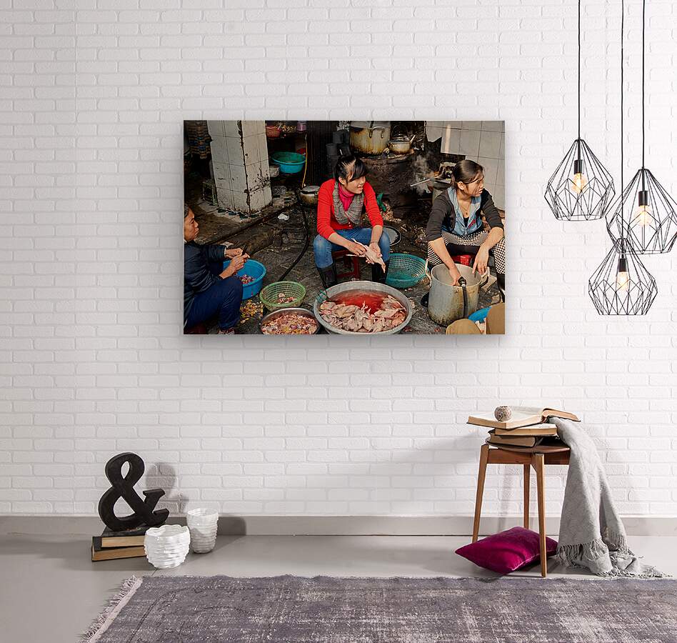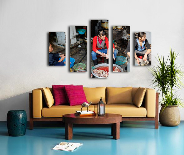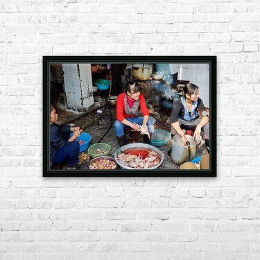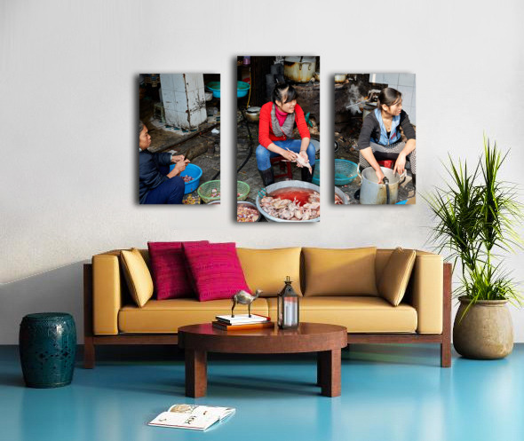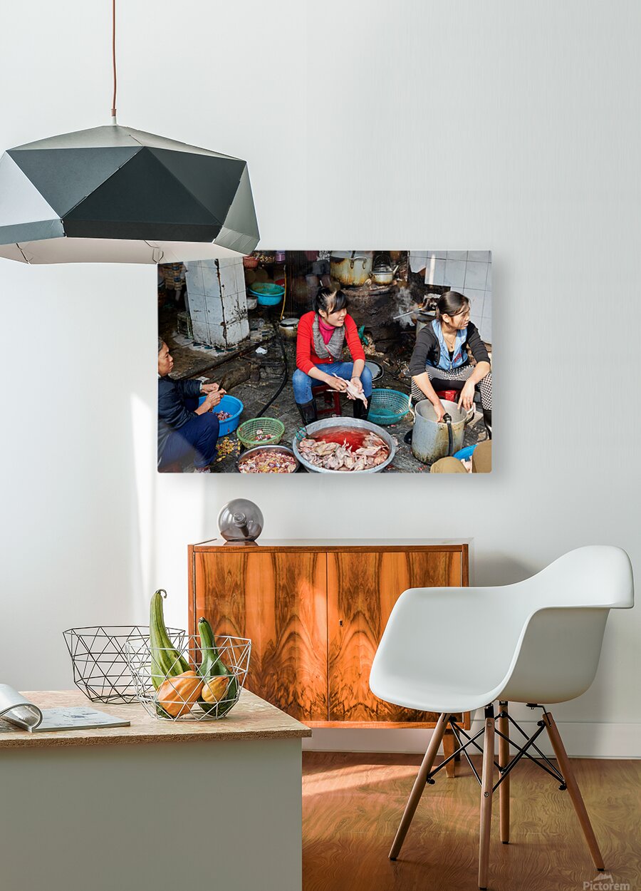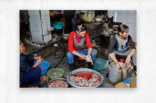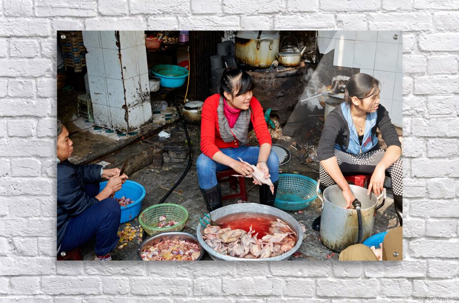 Get this artwork "Women preparing fish in a market in Hanoi Vietnam" in a framed print.