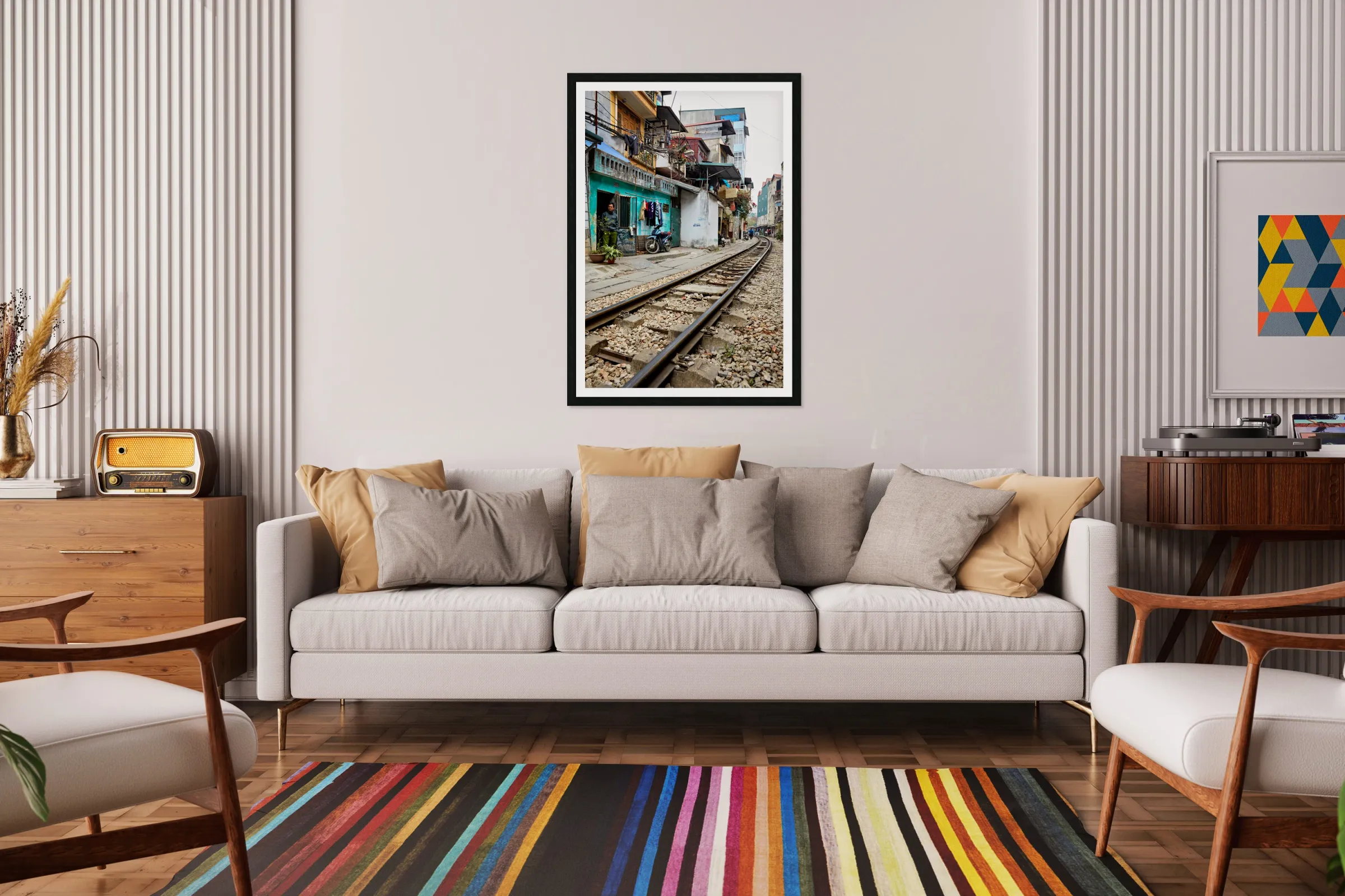 ABOUT THIS ARTWORK: LOCALS NEAR TRAIN TRACKS IN HO CHI MINH CITY VIETNAM
