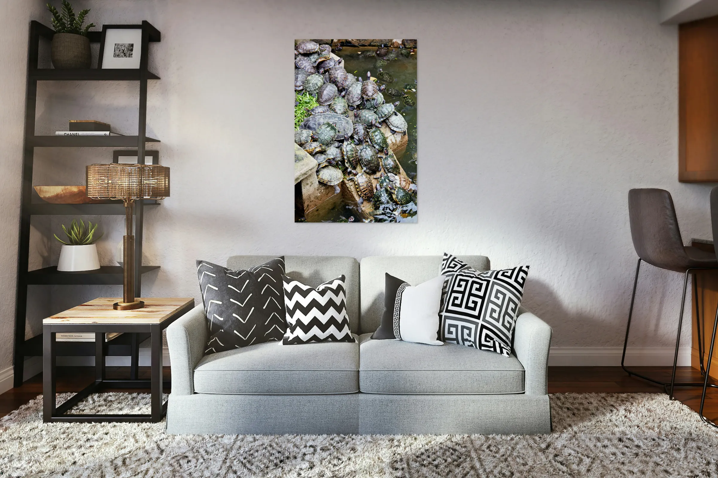 ABOUT THIS ARTWORK: TURTLES GATHER ON A STONE BY THE WATER IN SAIGON VIETNAM