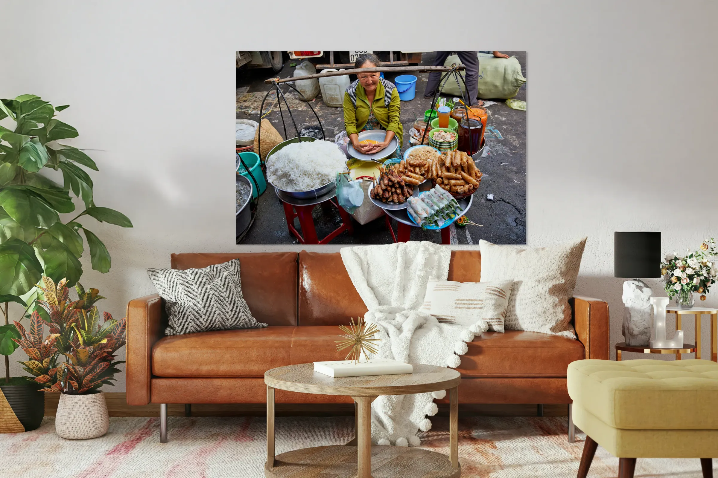 ABOUT THIS ARTWORK: WOMAN SELLING FOOD AT STREET MARKET IN HO CHI MINH CITY