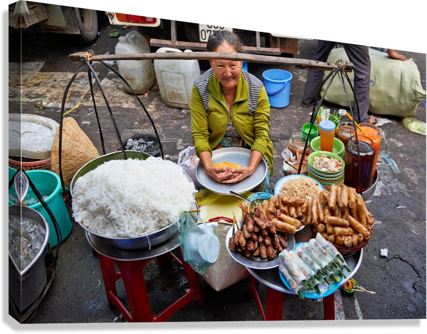 Get this artwork "Woman selling food at street market in Ho Chi Minh City" in a framed print.