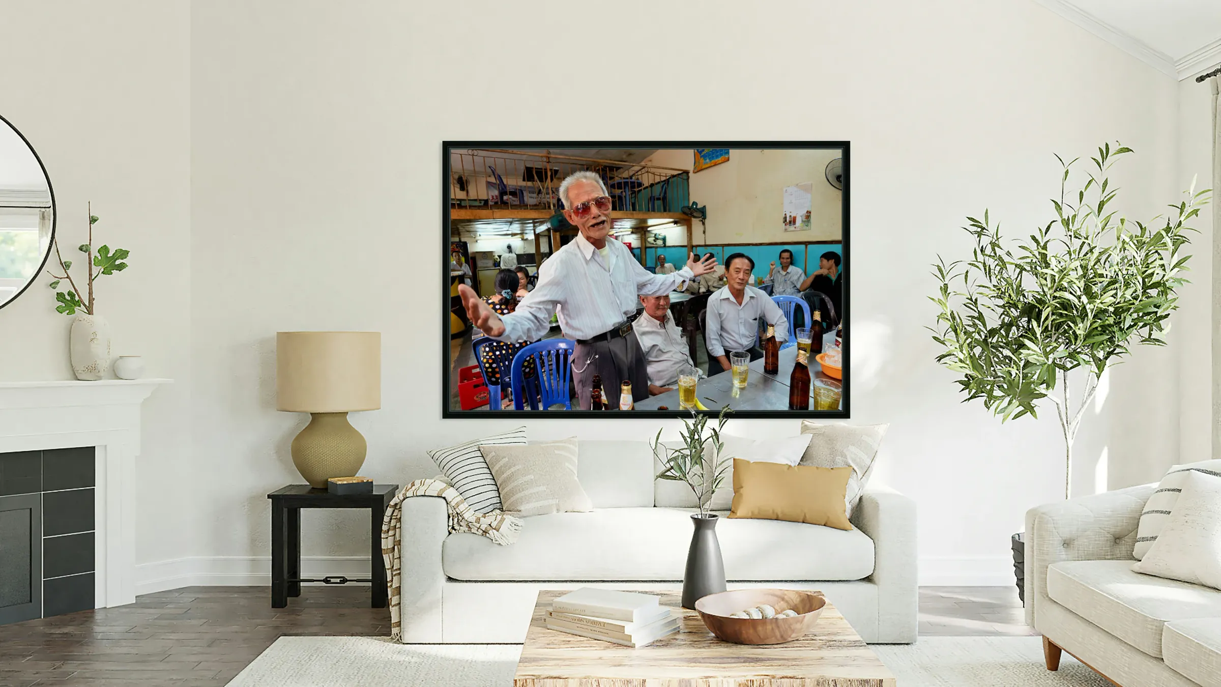 Men gather in Ho Chi Minh Vietnam for drinks and conversation Frame print