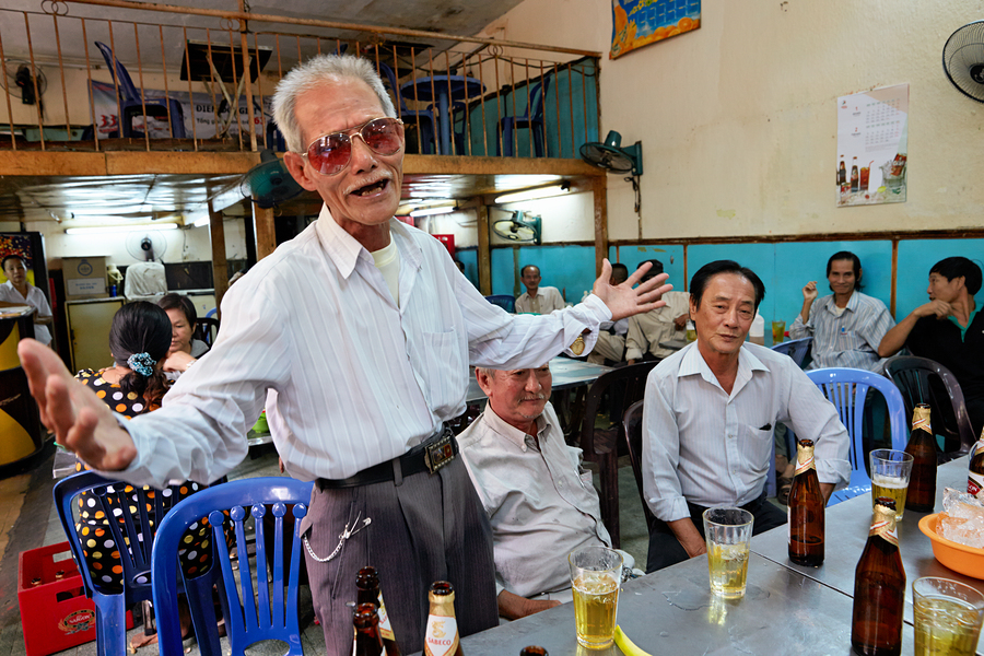 MEN GATHER IN HO CHI MINH VIETNAM FOR DRINKS AND CONVERSATION