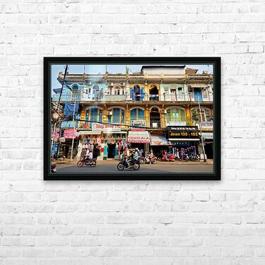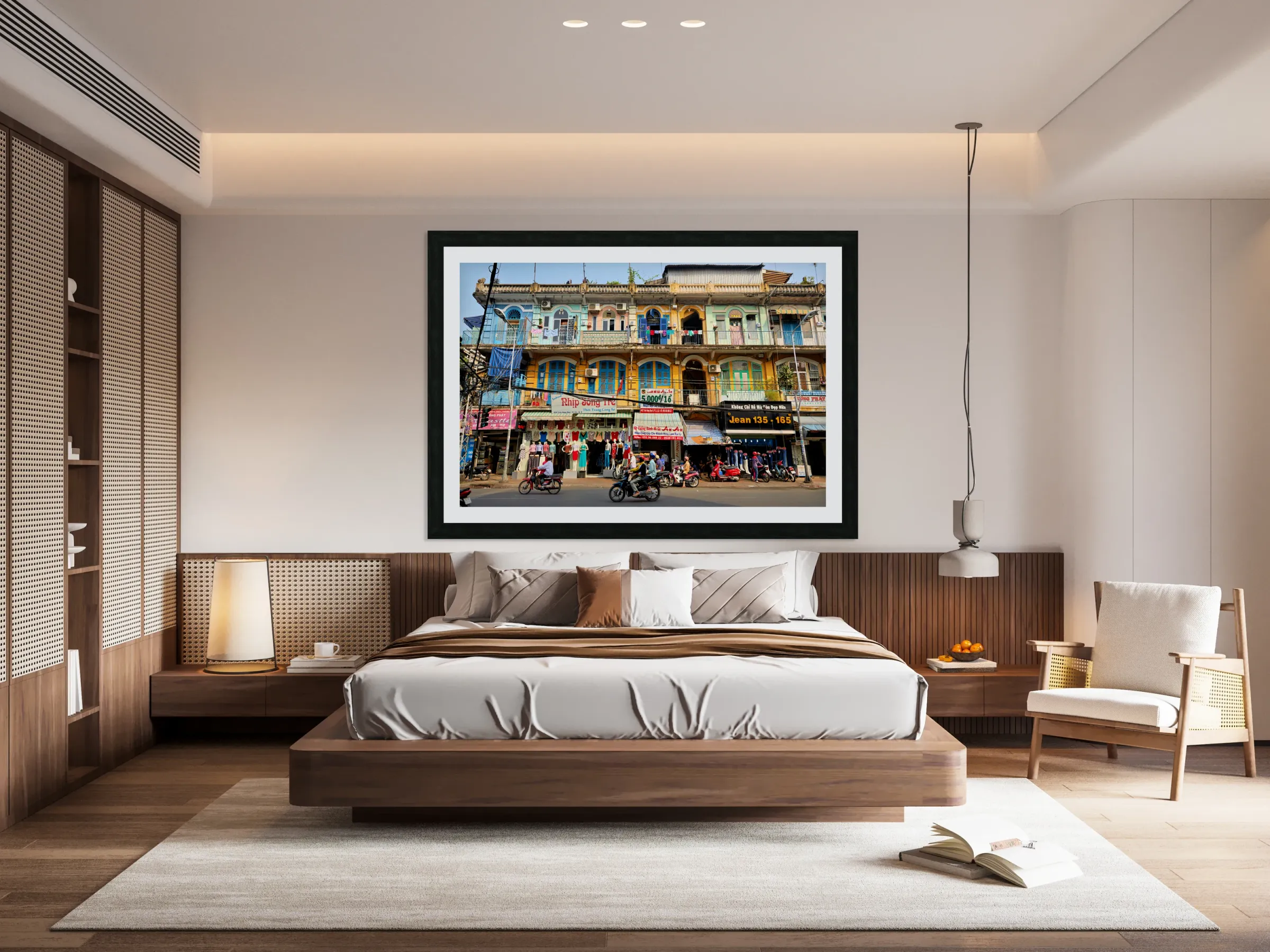 Shopping in Ho Chi Minh City streets during a sunny day Frame print