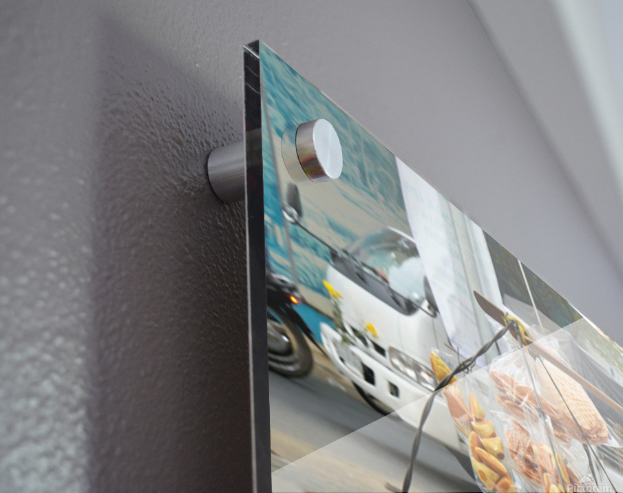 Printed to the edge - Ready to hang - provided with 4 premium polished aluminum stand off ( wall screws and mounting hardware provided )