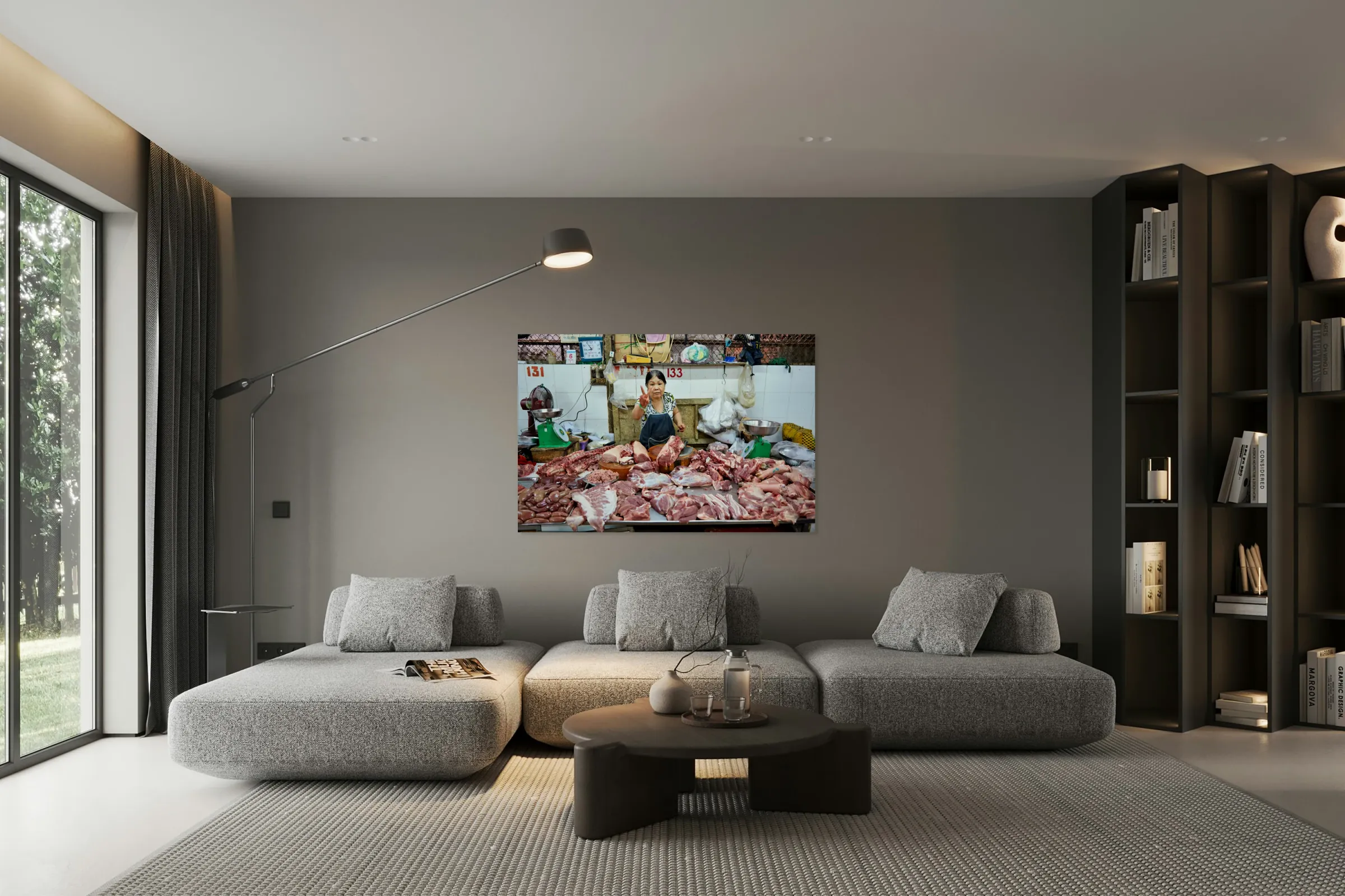 Get this artwork "Market scene in Ho Chi Minh City with meat vendor" in a framed print.