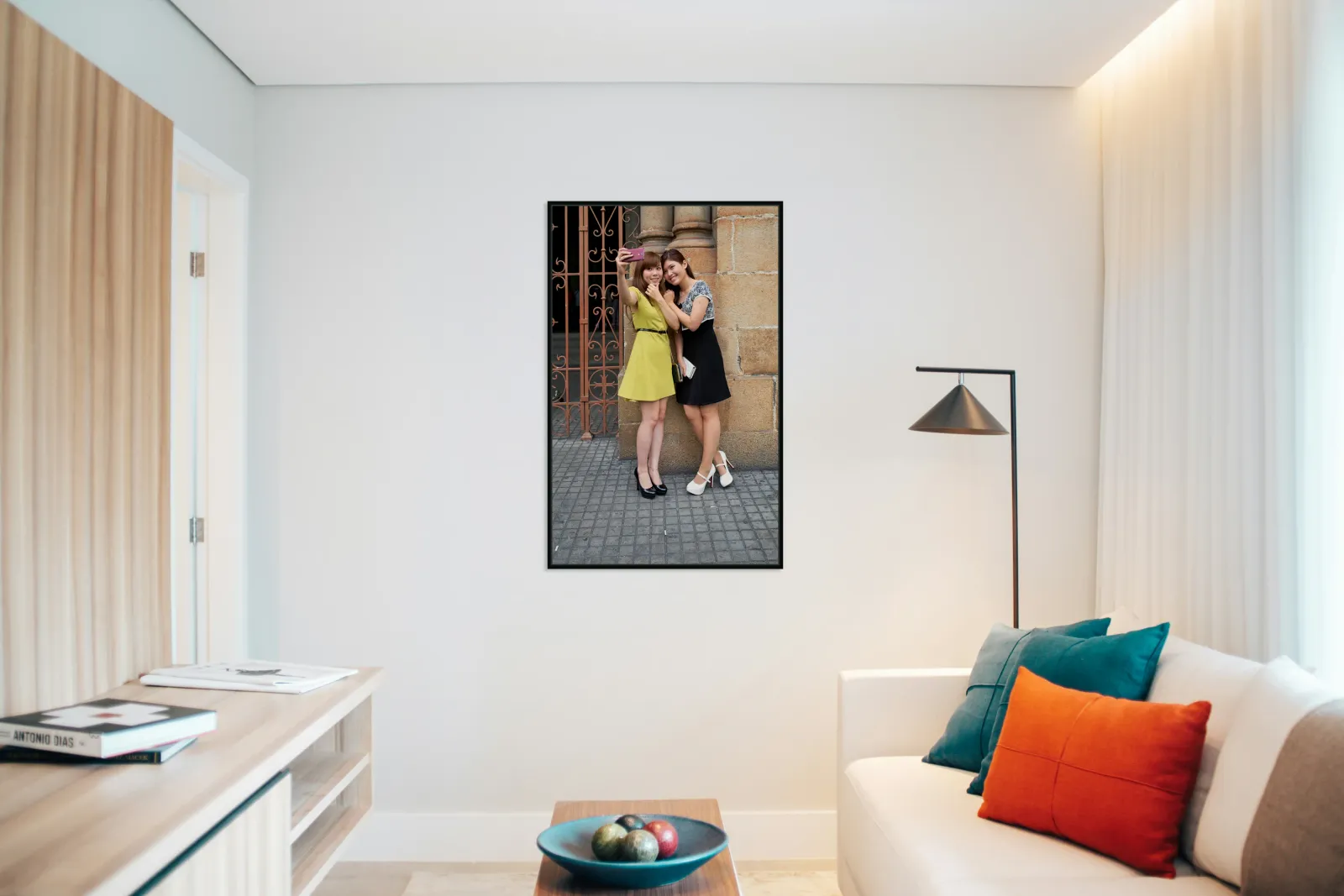 "Two women take a selfie in Ho Chi Minh City" in a framed print.