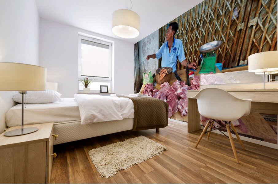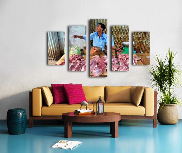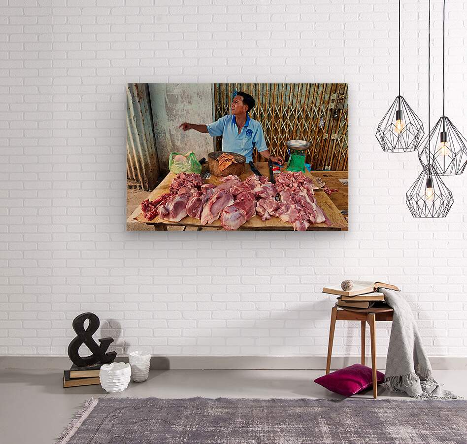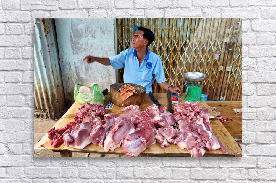 Get this artwork "Local butcher selling meat in Phu Quoc market area" in a framed print.