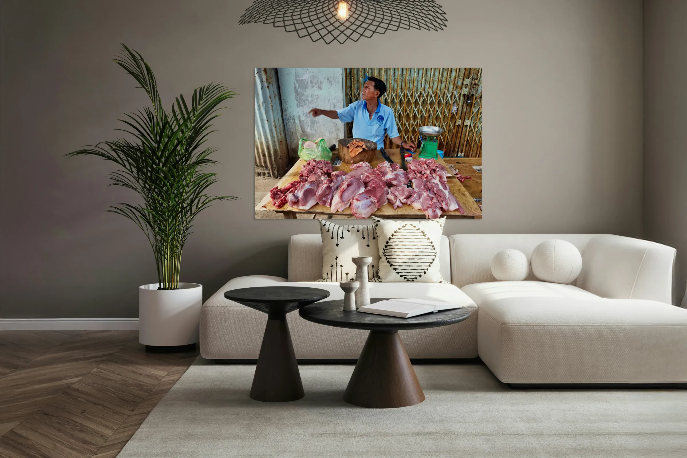 ABOUT THIS ARTWORK: LOCAL BUTCHER SELLING MEAT IN PHU QUOC MARKET AREA
