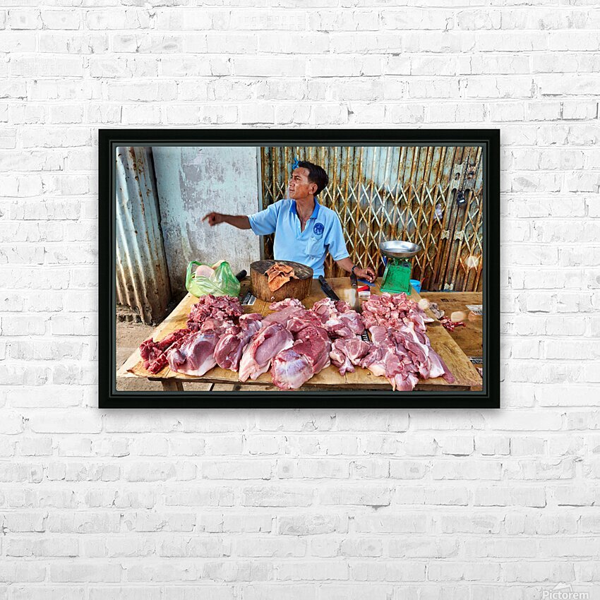 Local butcher selling meat in Phu Quoc market area Picture Frame Printing