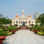 HO CHI MINH CITY HALL AND GARDENS IN SAIGON WITH STATUE