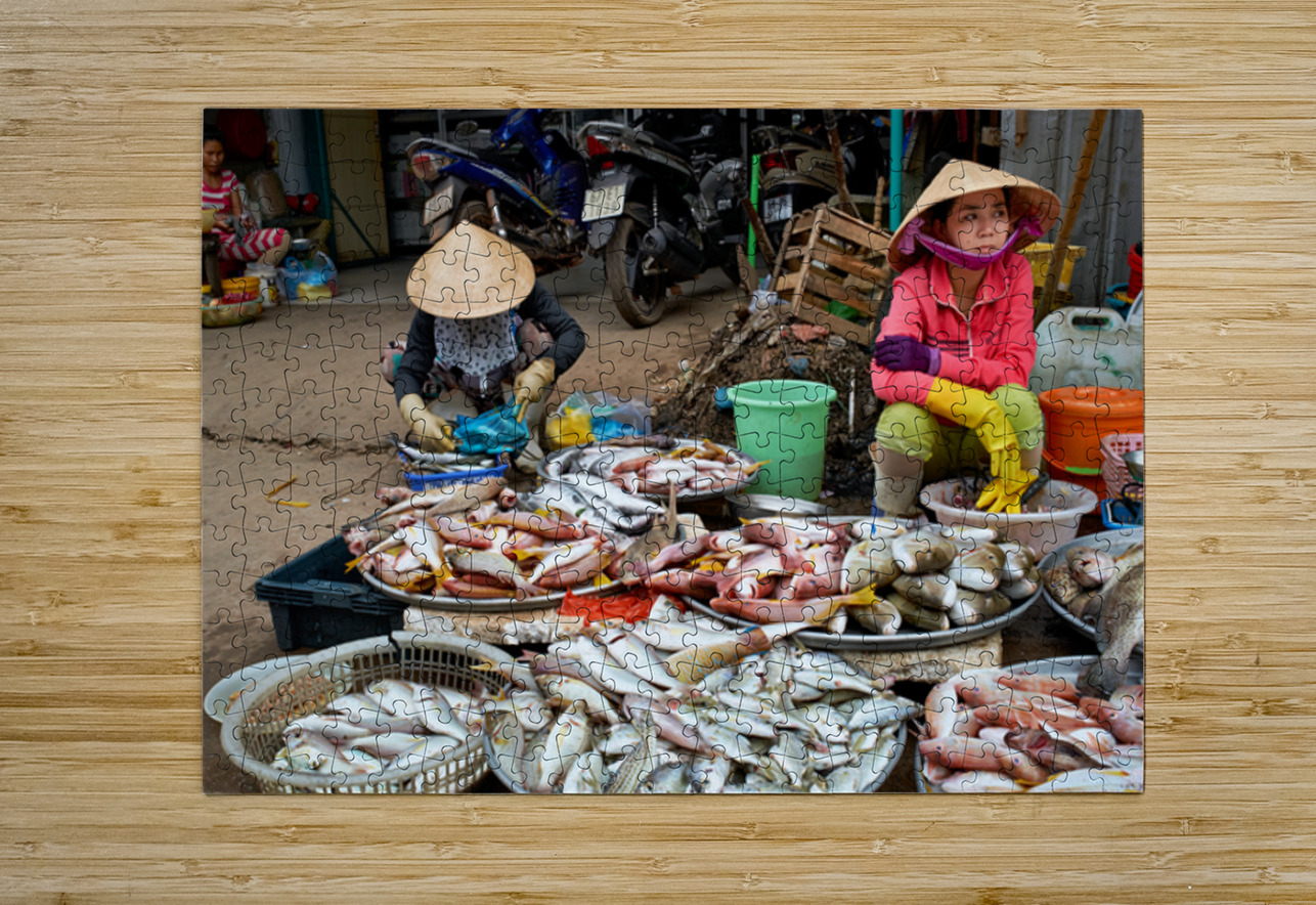 Fish market in Phu Quoc with local vendors working Marco Brivio Puzzle printing
