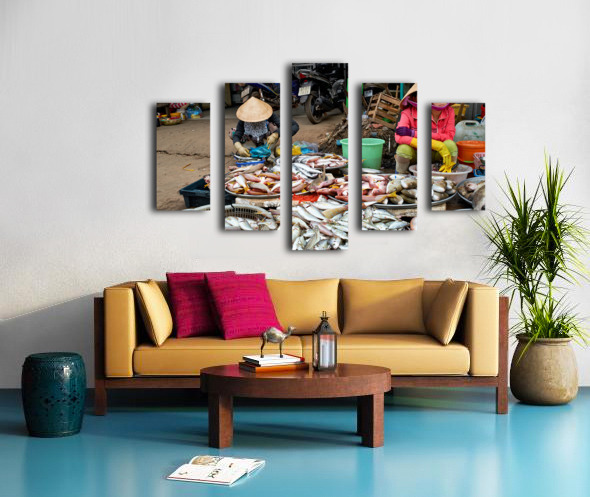 Get this artwork "Fish market in Phu Quoc with local vendors working" in a framed print.