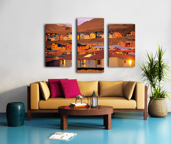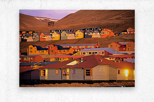 ABOUT THIS ARTWORK: COLORFUL BUILDINGS IN LONGYEARBYEN SVALBARD AT SUNSET