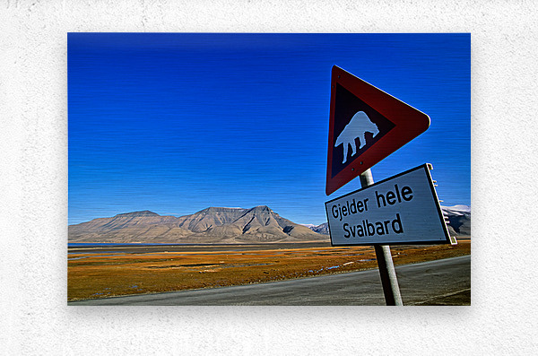 ABOUT THIS ARTWORK: WARNING SIGN FOR POLAR BEARS IN LONGYEARBYEN SVALBARD