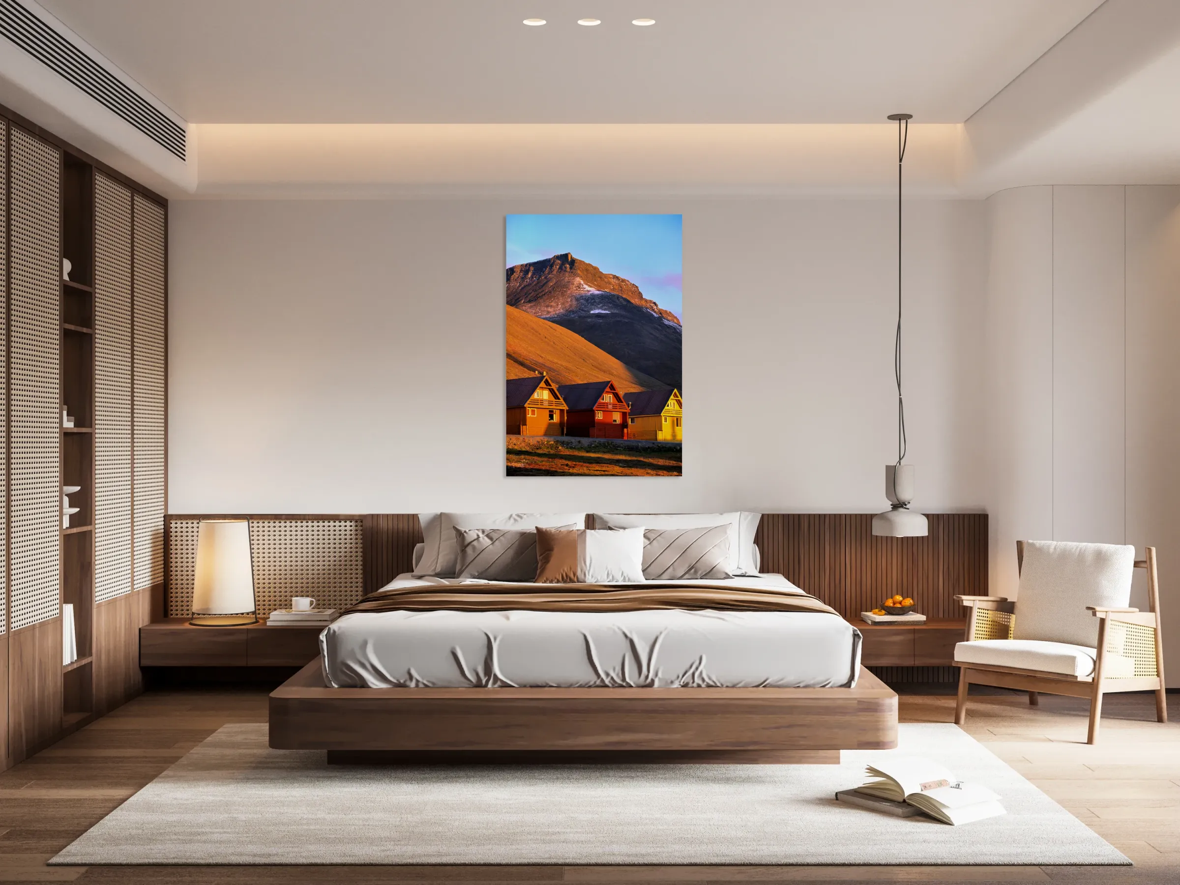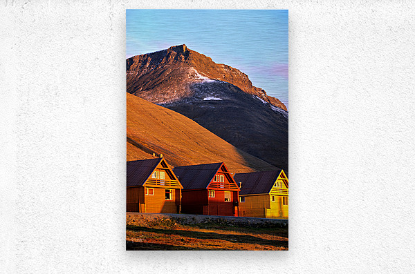 ABOUT THIS ARTWORK: COLORFUL HOUSES UNDER A MOUNTAIN IN LONGYEARBYEN SVALBARD