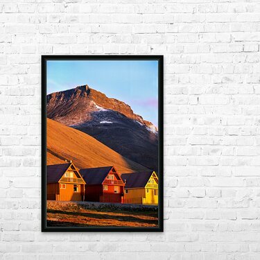 Get this artwork "Colorful houses under a mountain in Longyearbyen Svalbard" in a framed print.