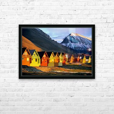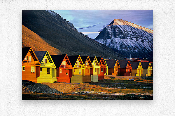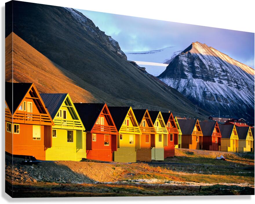 ABOUT THIS ARTWORK: COLORFUL HOUSES IN LONGYEARBYEN SVALBARD DURING SUNSET